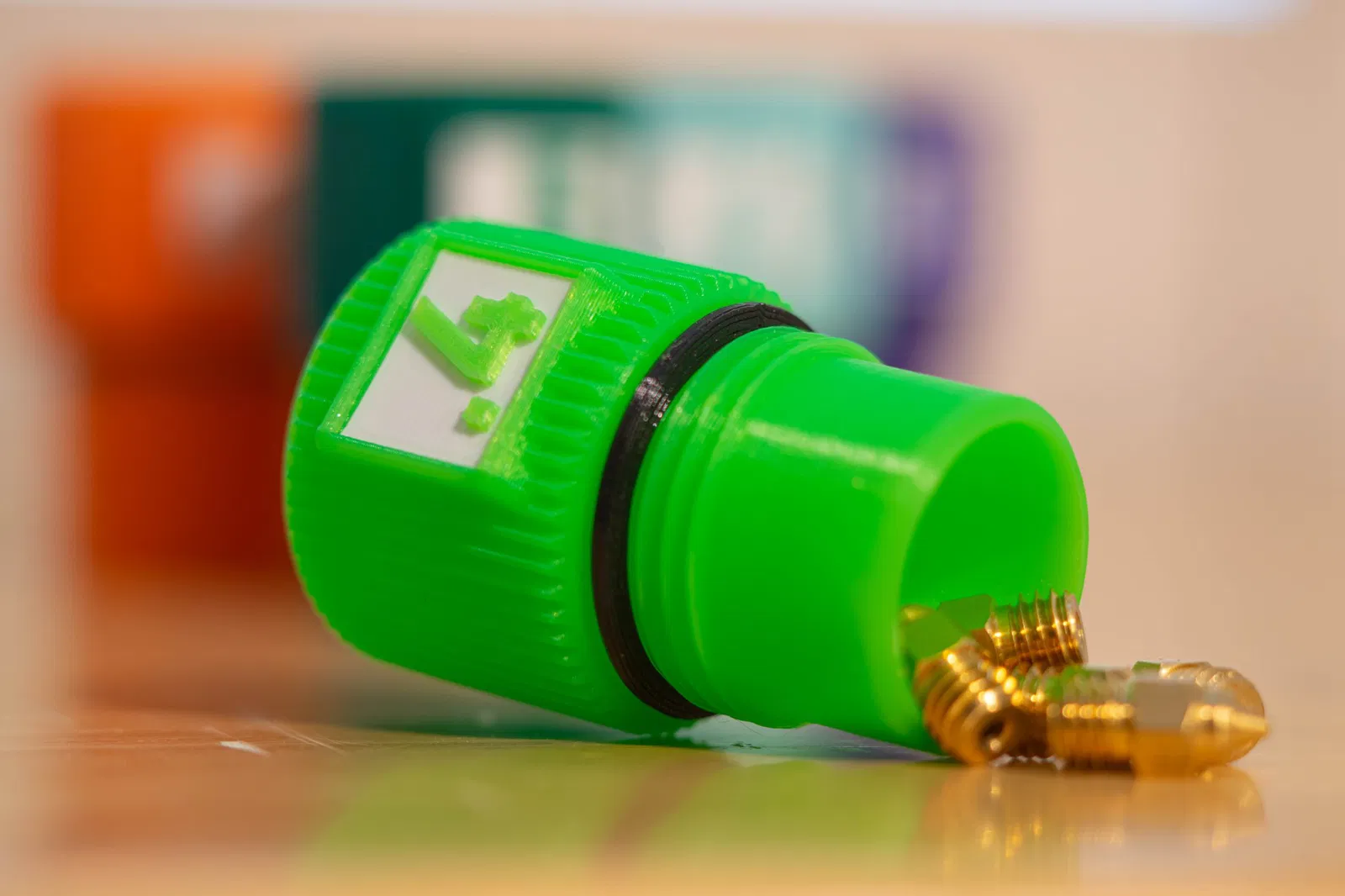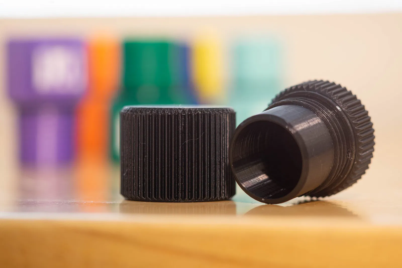 Mỗi container (ở tỷ lệ 100%) vừa vặn cho 10-12 vòi phun một cách thoải mái, nhưng về lý thuyết có thể được in lớn hơn bạn muốn, mặc dù các kích thước khác chưa được thử nghiệm. Tất cả các mô hình trong hình ảnh đều được in với độ cao lớp 0.15mm, nhưng 0.2mm cũng sẽ hoạt động. Tôi không khuyên bạn nên lớn hơn 0.2mm vì lý do ren trừ khi bạn phóng to các bộ phận.