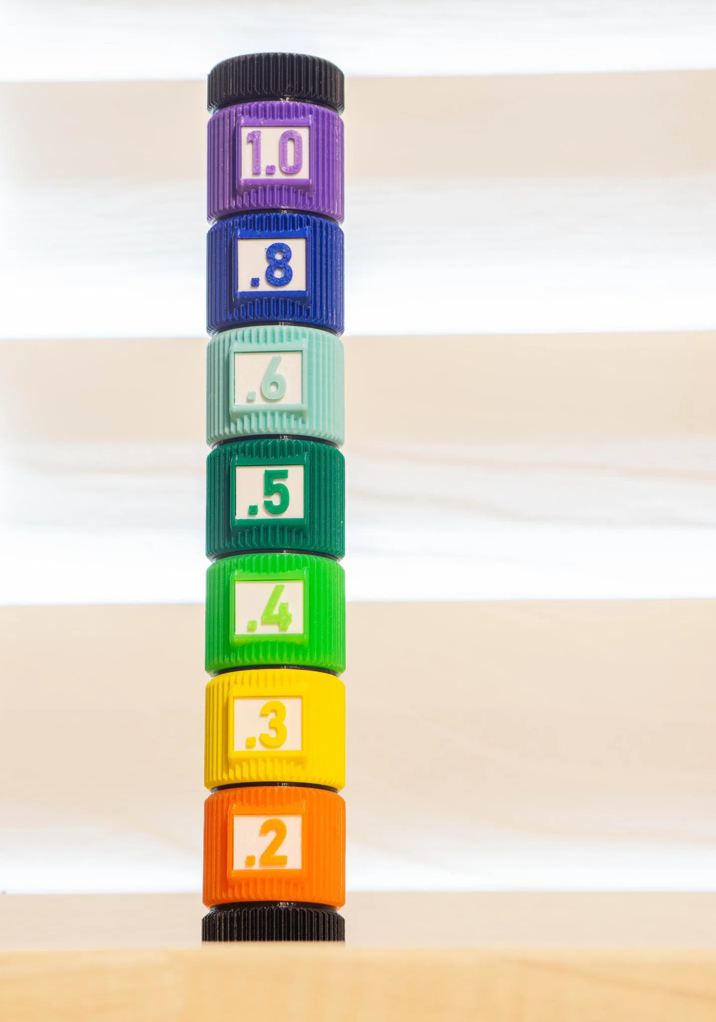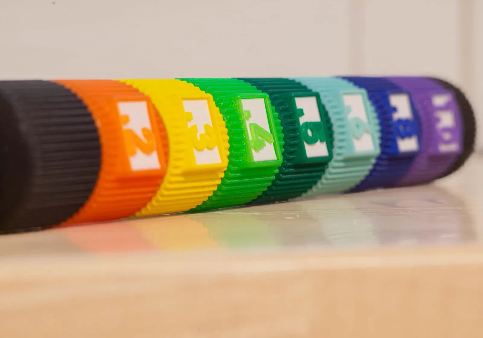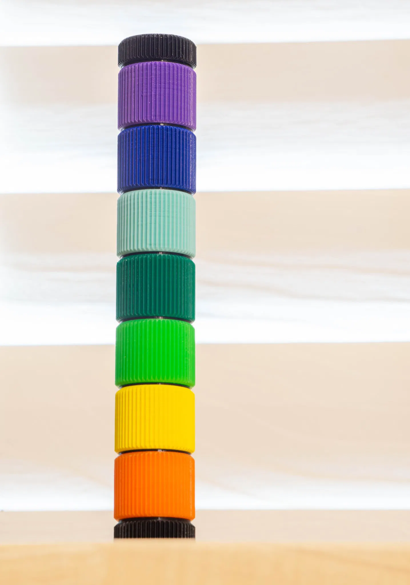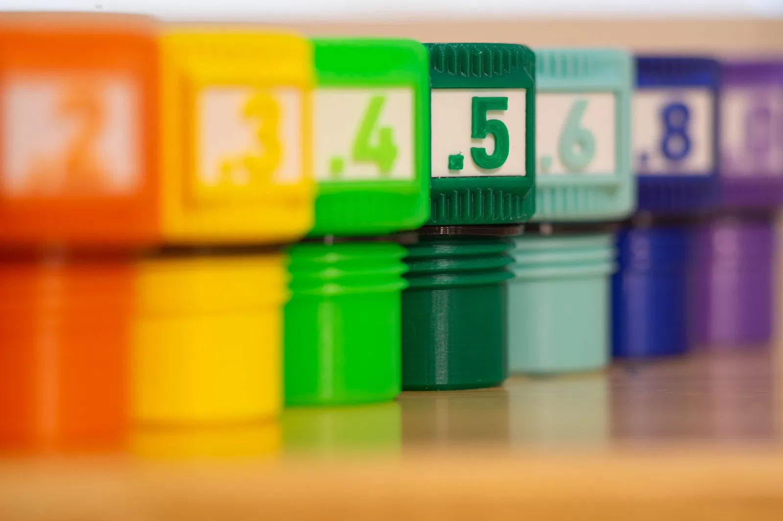 Các container có thể được in có hoặc không có nhãn, và các nhãn được bao gồm. Các nhãn trong hình ảnh được in với vòi phun 0.2mm, nhưng sẽ hoạt động với bất kỳ vòi phun nào với một chút ít chi tiết hơn. Chúng được in màu trắng cho nền và màu liên quan cho số (chuyển đổi filament giữa các lần in). Khi in xong, chúng sẽ gắn vào không gian hình chữ nhật của container, mặc dù tôi đã thêm một giọt keo siêu dính nhỏ để giữ chúng chắc chắn.
