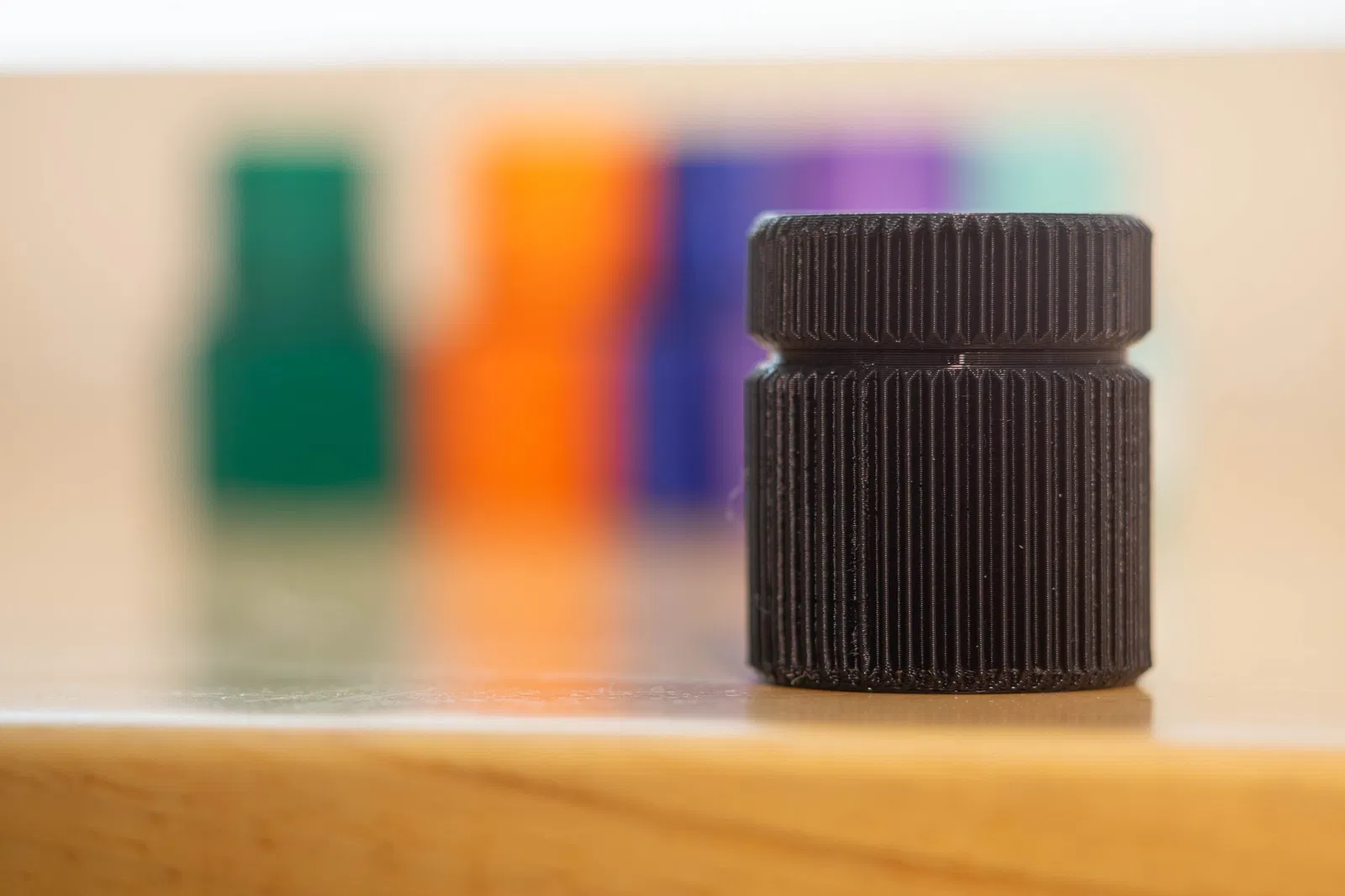 Nếu bạn chỉ muốn một container nhỏ không có nhãn, bạn chỉ cần in nắp và một vòng đệm. Chúng sẽ vừa vặn như những cái màu đen trong hình.
