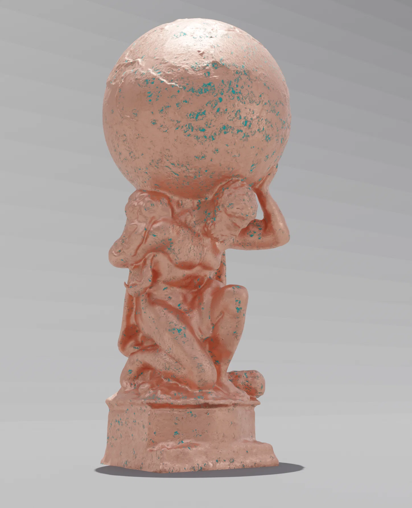 Mình làm tượng này bằng photogrammetry rồi xử lý thêm trong Blender để lên chi tiết cho đã. Đây cũng là nguồn cảm hứng cho phần art trong Civilization IV, và nhiều người hay nhầm nó với Titan Atlas bị Zeus trừng phạt.