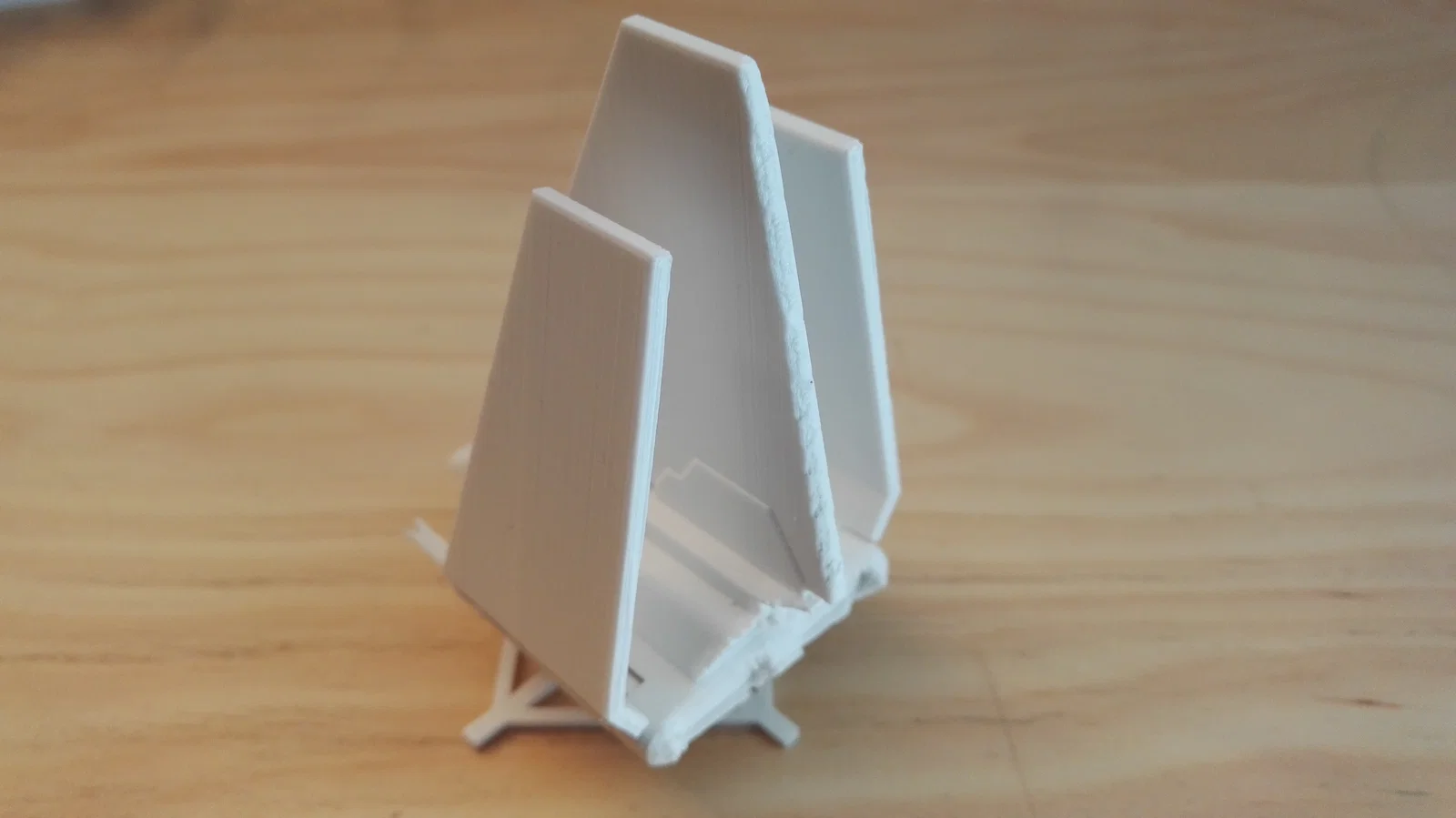 Ngay bên dưới cánh trên, phía sau cockpit một chút, có ba trụ support. In xong có thể bẻ bỏ chúng.