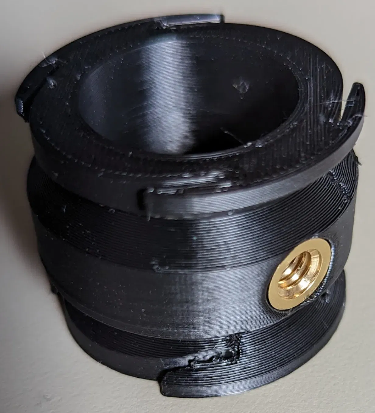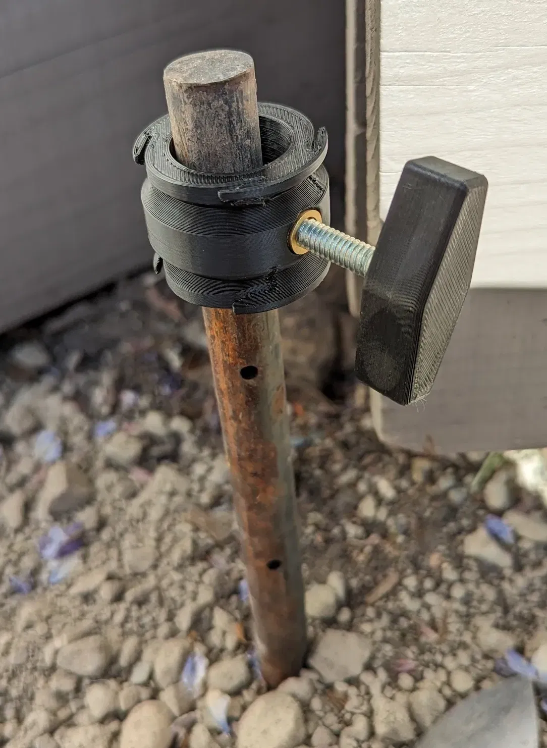 Gắn một giá đỡ để gắn một dây cước vào một cọc ống. Mẫu này có 4 tab nhỏ tích hợp sẵn dùng làm hỗ trợ. Hãy gỡ chúng ra sau khi in xong. Thêm một chốt nhiệt 1/4-20. Tôi rất khuyên bạn nên sử dụng loại có rãnh để có độ bền tốt hơn. Đây là cái mà tôi đã sử dụng (liên kết liên kết): https://amzn.to/3WLDzRd Cố định giá đỡ vào cọc bằng một bu lông 1/4-20. Bạn cũng có thể dán một núm cánh vào bu lông bằng cách sử dụng mẫu này: <> Nếu bạn thích những gì tôi đang làm… …hãy xem xét mua cho tôi một ☕ trên Ko-Fi.