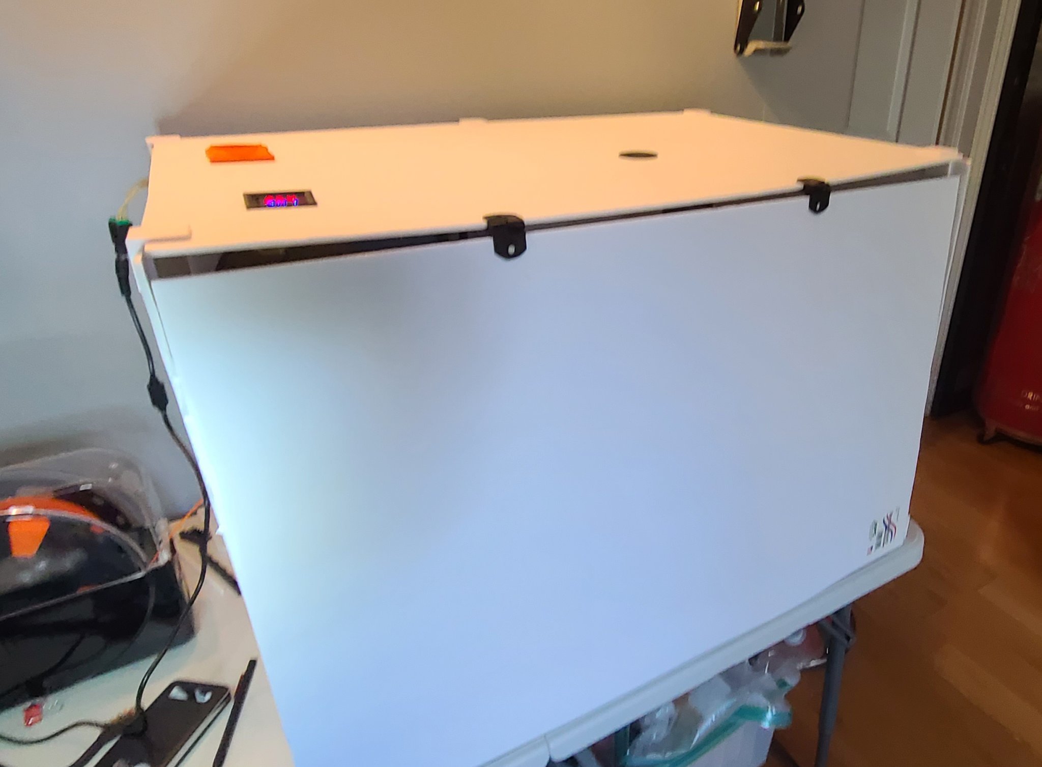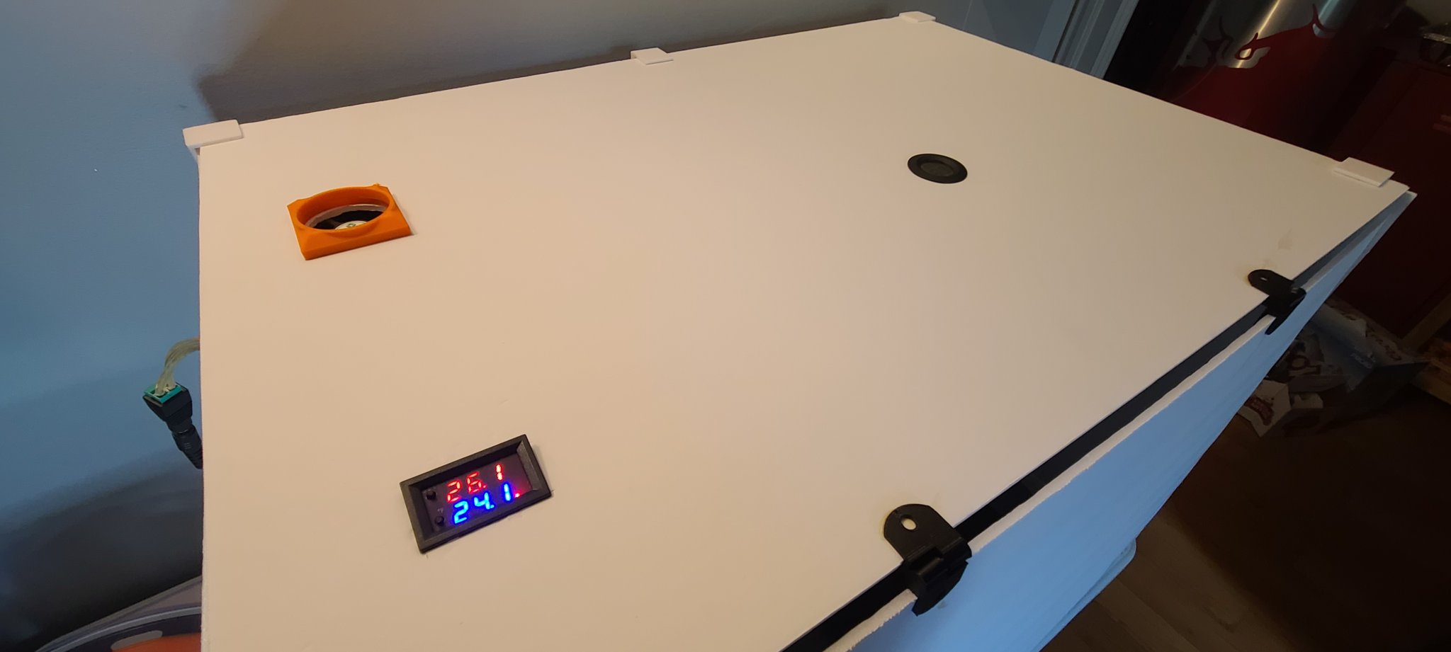 In ấn và lắp ráp vỏ của riêng bạn cho máy in 3D. Thiết kế và kích thước theo lựa chọn của bạn. Tất cả những gì bạn cần thêm là - bảng foam 5mm cho tường và một số linh kiện điện tử nếu bạn cần nhiều điều khiển hơn. hình ảnh của linh kiện điện tử và bảng foam - đính kèm