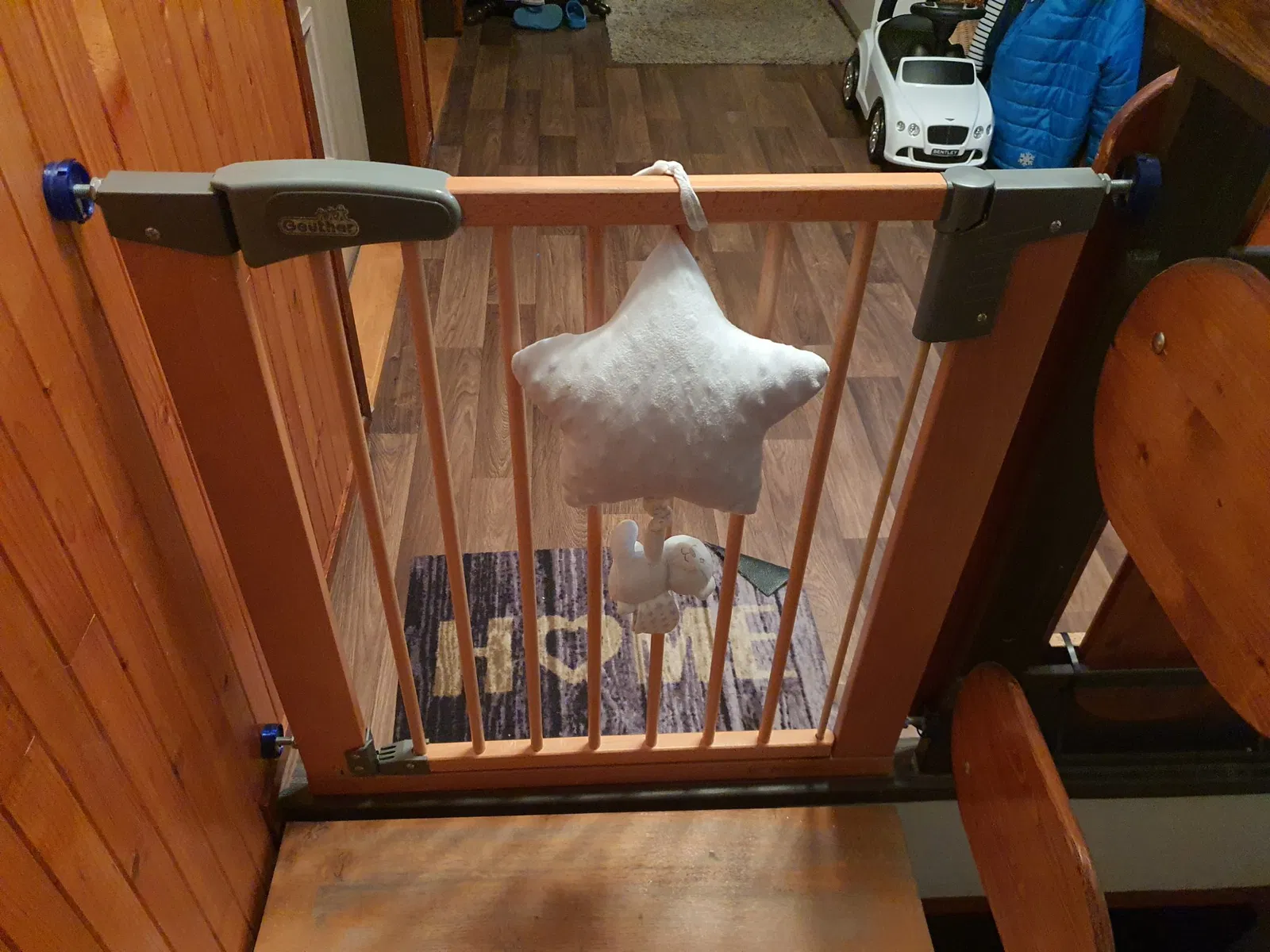Upevňující díl se zavláčkou na dětskou bezpečnostní branku. Nhờ vào bộ phận này, bạn có thể gắn cổng vào tường hoặc lan can. Bộ phận này được thiết kế cho cổng của thương hiệu Geuther.