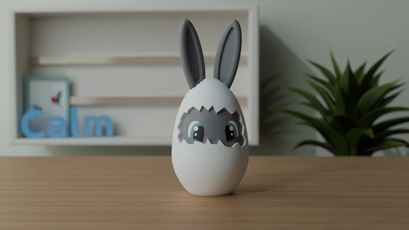 Mẫu “Bunny In An Egg [Easter Rabbit]” siêu dễ thương: một chú thỏ nhỏ ẩn trong quả trứng nhiều màu. Mở (bẻ) quả trứng ra để lộ bé thỏ bông xù, đúng chất không khí Easter.
