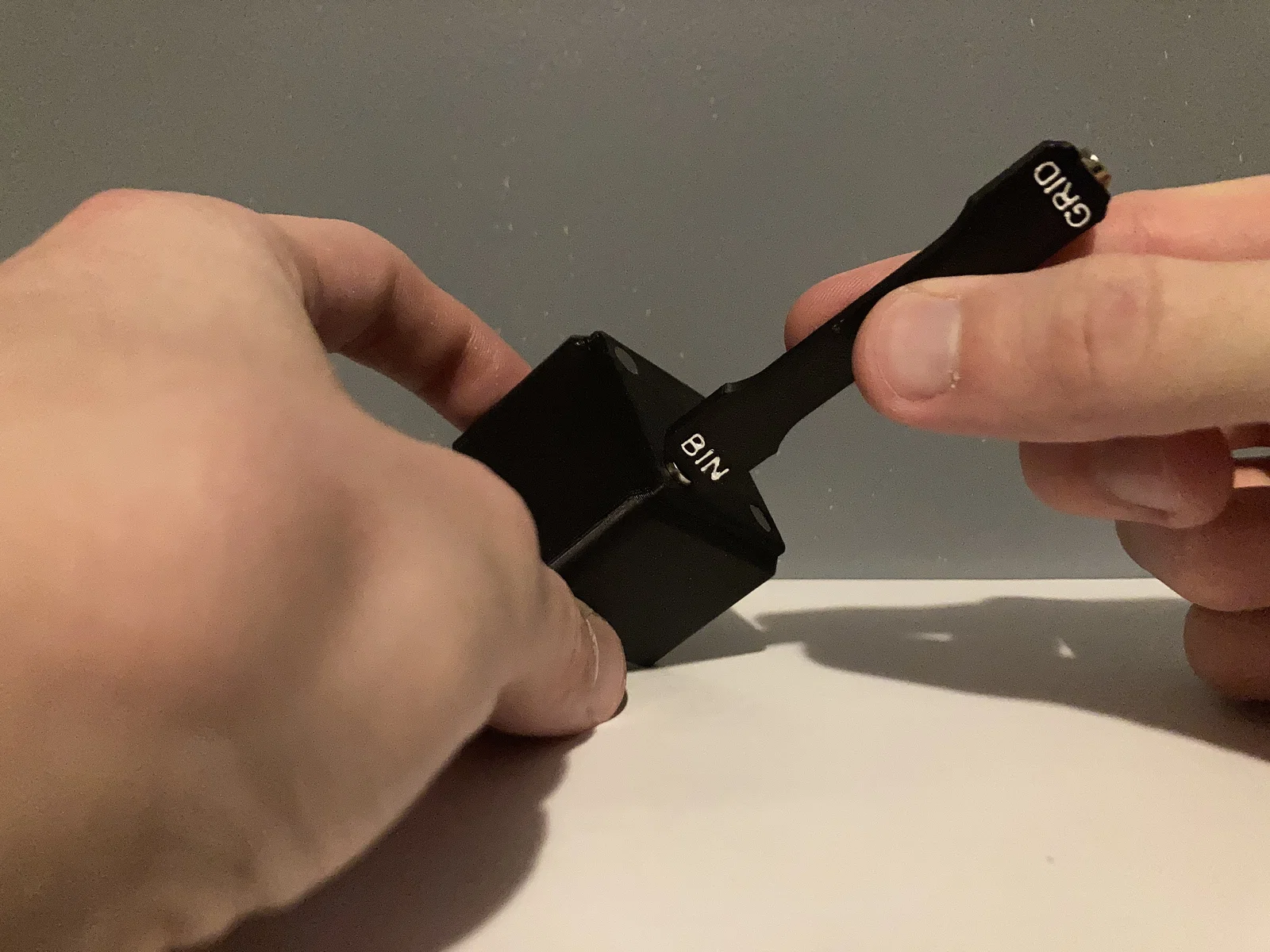 Cách sử dụng rất đơn giản: bác hãy gắn nam châm vào hai đầu của dụng cụ theo đúng hướng dẫn, sau đó dùng đầu "BIN" để định vị nam châm cho khay và đầu "GRID" để định vị cho tấm lưới. Khi đã xác định được chiều đúng, bác chỉ cần dùng một chút keo dán sắt (super glue) để cố định nam châm vào lỗ đã in sẵn. Đây là món phụ kiện không thể thiếu để nâng cao trải nghiệm làm việc với hệ thống lưu trữ thông minh này.