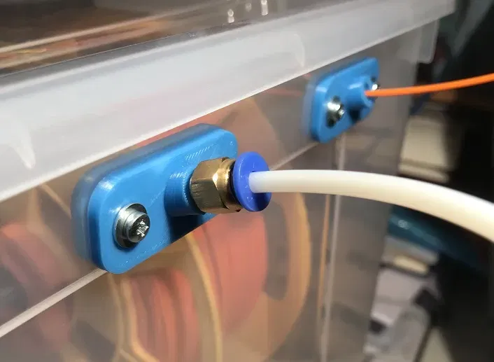 Lấy cảm hứng từ thiết kế của sarman_1998, tôi đã tạo ra phiên bản của riêng mình có thể được sử dụng kết hợp với bộ kết nối PC4-M6 (và PC4-M10, xem bên dưới) phù hợp với ống PTFE (ren 6mm), và 2 bu lông M3 + đai ốc lục giác.