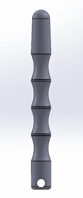 Mình thử in một cái Kubotan mình thấy trên Thingiverse, nhưng phần đế của nó tệ quá, bám không đủ tốt để in xong, nên mình tự thiết kế lại (và tiện làm nó bớt nhọn một chút).