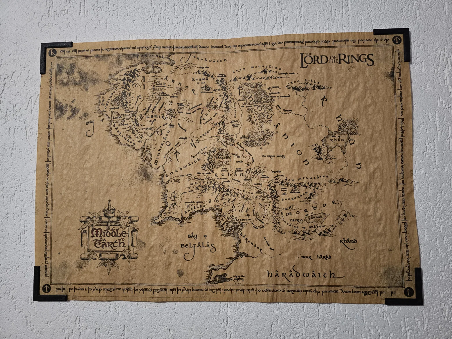 Bộ ngàm kẹp góc cho poster, giữ poster cố định bằng lực ma sát. Nhờ vậy sau này bạn có thể tháo poster ra khỏi ngàm mà không bị hằn hay lỗi thẩm mỹ, hoặc đổi sang poster khác cùng kích thước cũng rất dễ. Các ngàm dùng nam châm để kẹp giữ poster và dùng command strips (loại nhỏ) để dán lên tường (có thể dùng băng keo khác miễn là kích thước tương tự).