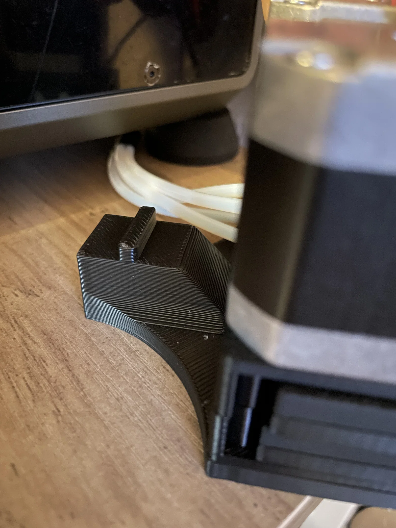Mình để máy in sát tường nên không dùng được vị trí gắn mà Bill bên 3dChameleon có thiết kế sẵn. Mình làm phiên bản riêng, tối giản, được giữ tại chỗ nhờ ma sát và trọng lượng của chính máy in.