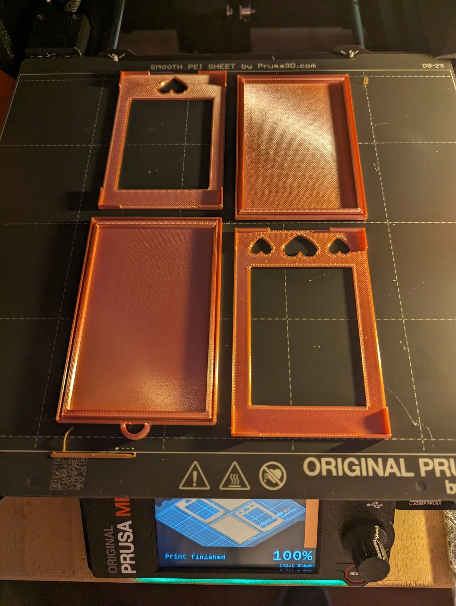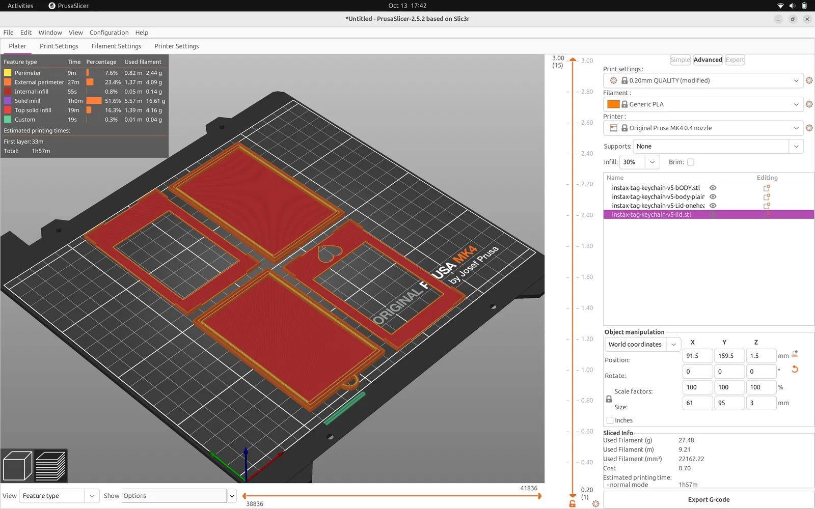 Nhớ lật phần nắp sao cho mặt trên được in ở lớp đầu tiên (first layer). Một bộ đầy đủ (đế + nắp) mất khoảng 30 phút để in trên MK4.