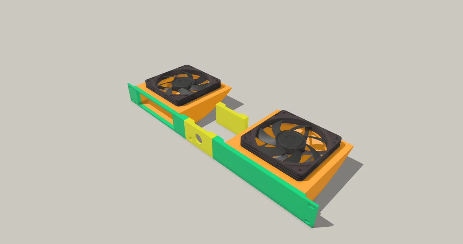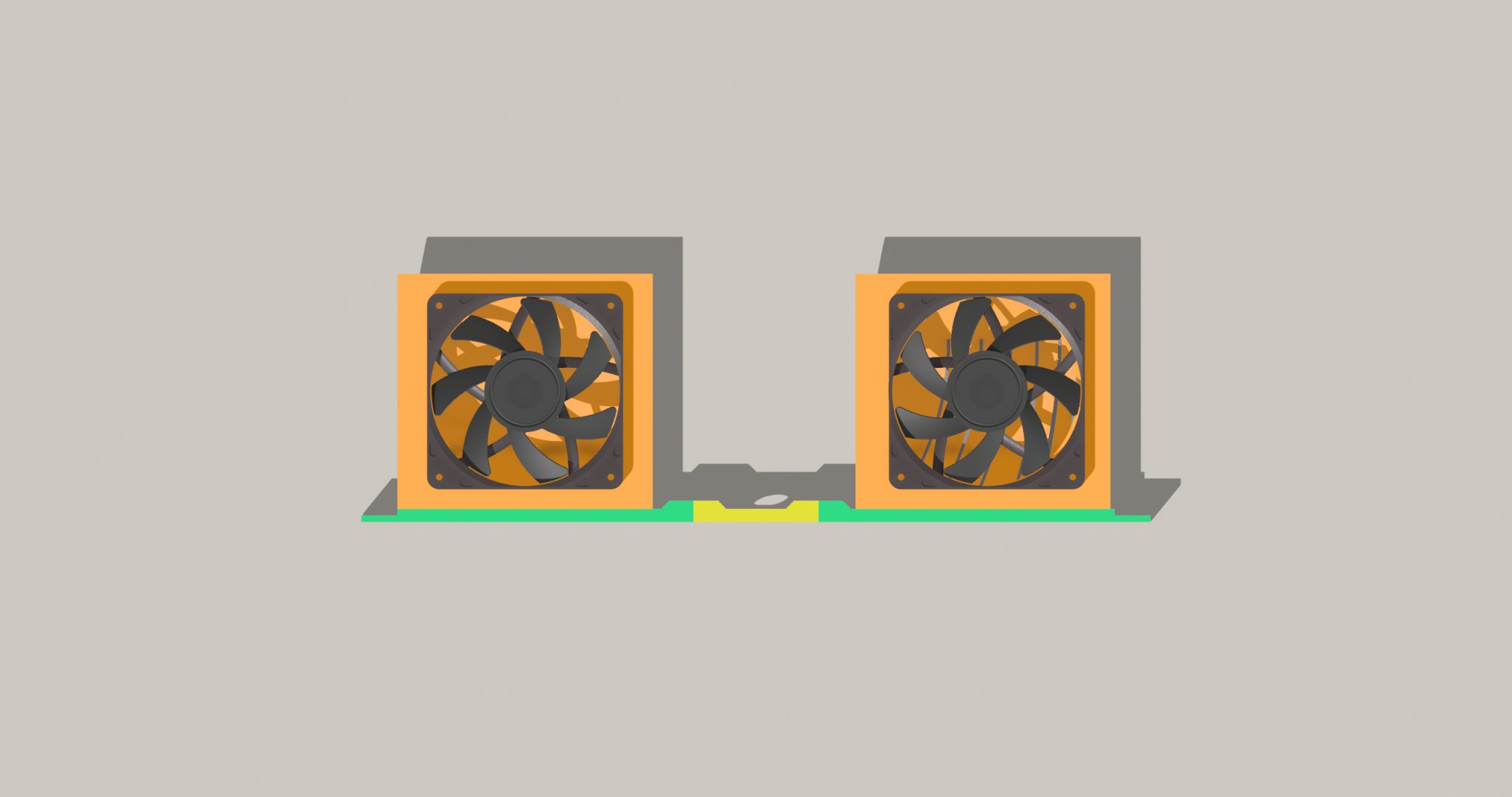 Bạn có thể kết nối hai ống quạt 120mm hoặc một ống quạt sang bất kỳ bên nào bạn thích. Khi chỉ sử dụng một, hãy nhớ rằng toàn bộ cấu trúc sẽ ổn định hơn khi in toàn bộ phần trống. Cầu nối ở giữa kết nối hai mảnh lại với nhau.