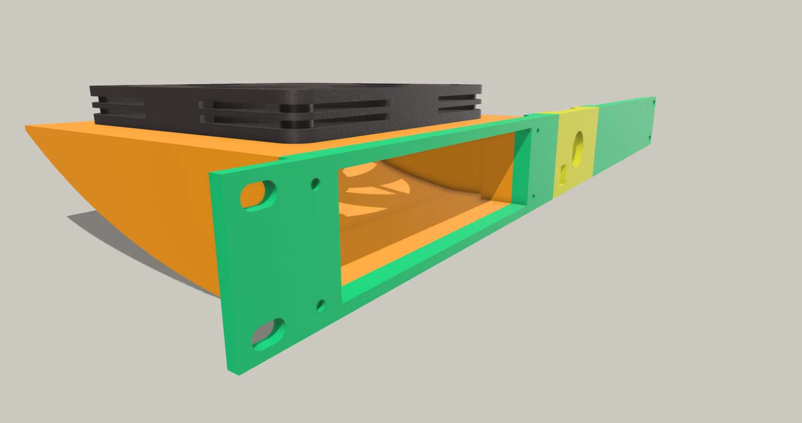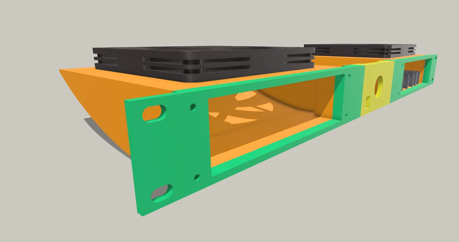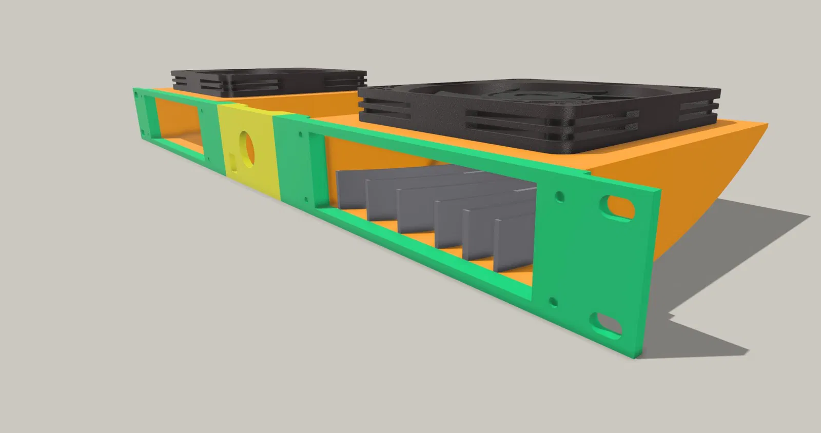 Thiết kế có một nhu cầu đơn giản, đó là làm mát một kệ 1U. Trong quá trình sản xuất, nó cần phải vừa với bàn in nhỏ của tôi để làm mát không khí như một giải pháp tạm thời. Nhưng nó hoạt động rất tốt nên tôi sẽ để nó được lắp đặt.