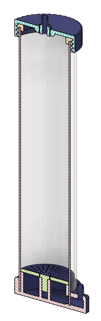 Mẫu DIY CO2 Scrubber dùng ống acrylic: khoét lỗ 1/2” ở đáy ống để dẫn khí vào giữa ống, canh lỗ ống trùng lỗ hút của đế rồi lắp. Có thể dán epoxy nhưng thiết kế đã khít.