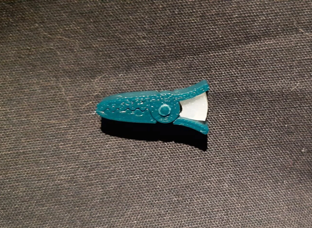 Kẹp may nhỏ gọn giúp giữ cố định các lớp vải. In tốn chưa tới 1g PLA, dùng một đoạn filament thừa làm bản lề (có thể tán bằng bật lửa) và một miếng silicone vụn làm lò xo.