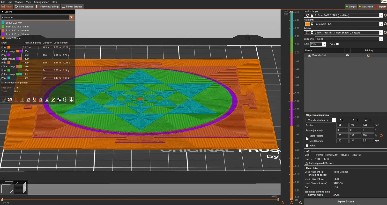 Thay đổi màu thứ ba ở 2.00mm (Prusament Galaxy Black)
