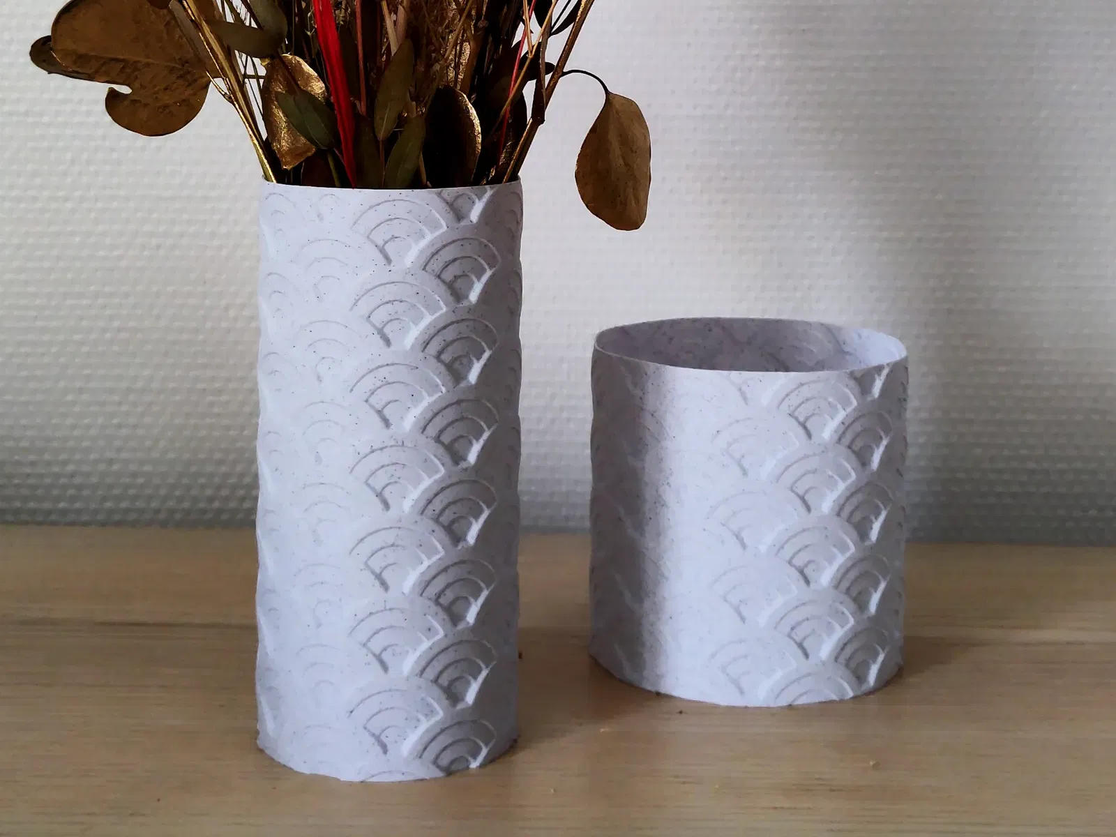 Một bộ bình & chậu lấy cảm hứng từ seigaiha truyền thống, họa tiết này, còn được biết đến là, được thiết kế để đại diện cho biển xanh và những con sóng của nó. Tôi muốn xem liệu tôi có thể tạo ra một phiên bản 3D của họa tiết truyền thống Nhật Bản này và làm cho nó có thể in được trong Chế độ Bình.