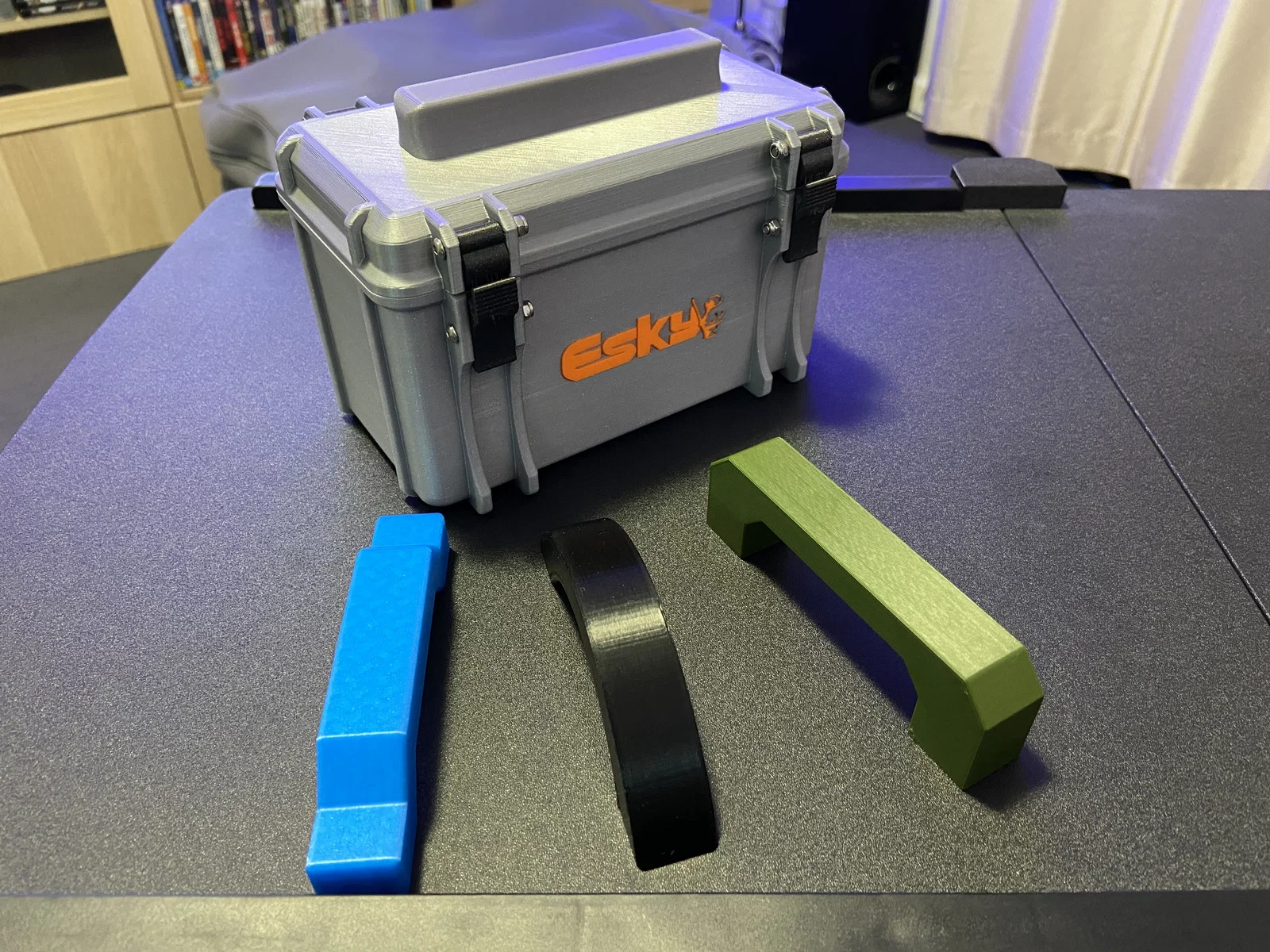 Bản cập nhật 08/12/2020 thêm tay cầm và nắp có lỗ cho Chilly Bin Water-Resistant Storage Box MMU. Cần ốc M3, có hướng dẫn taro/self-tap và in seal bằng TPU hoặc dùng silicon để tăng độ kín.