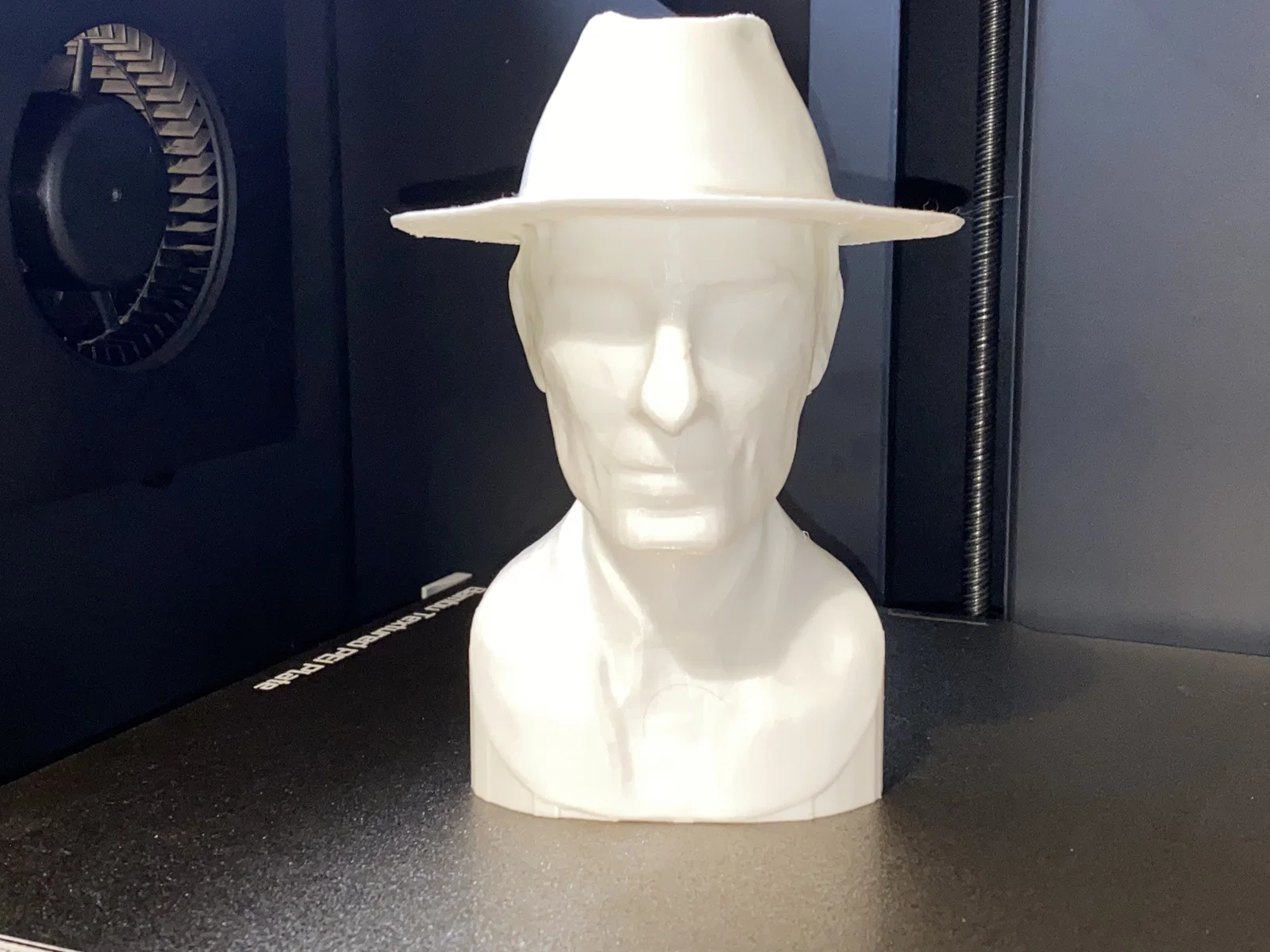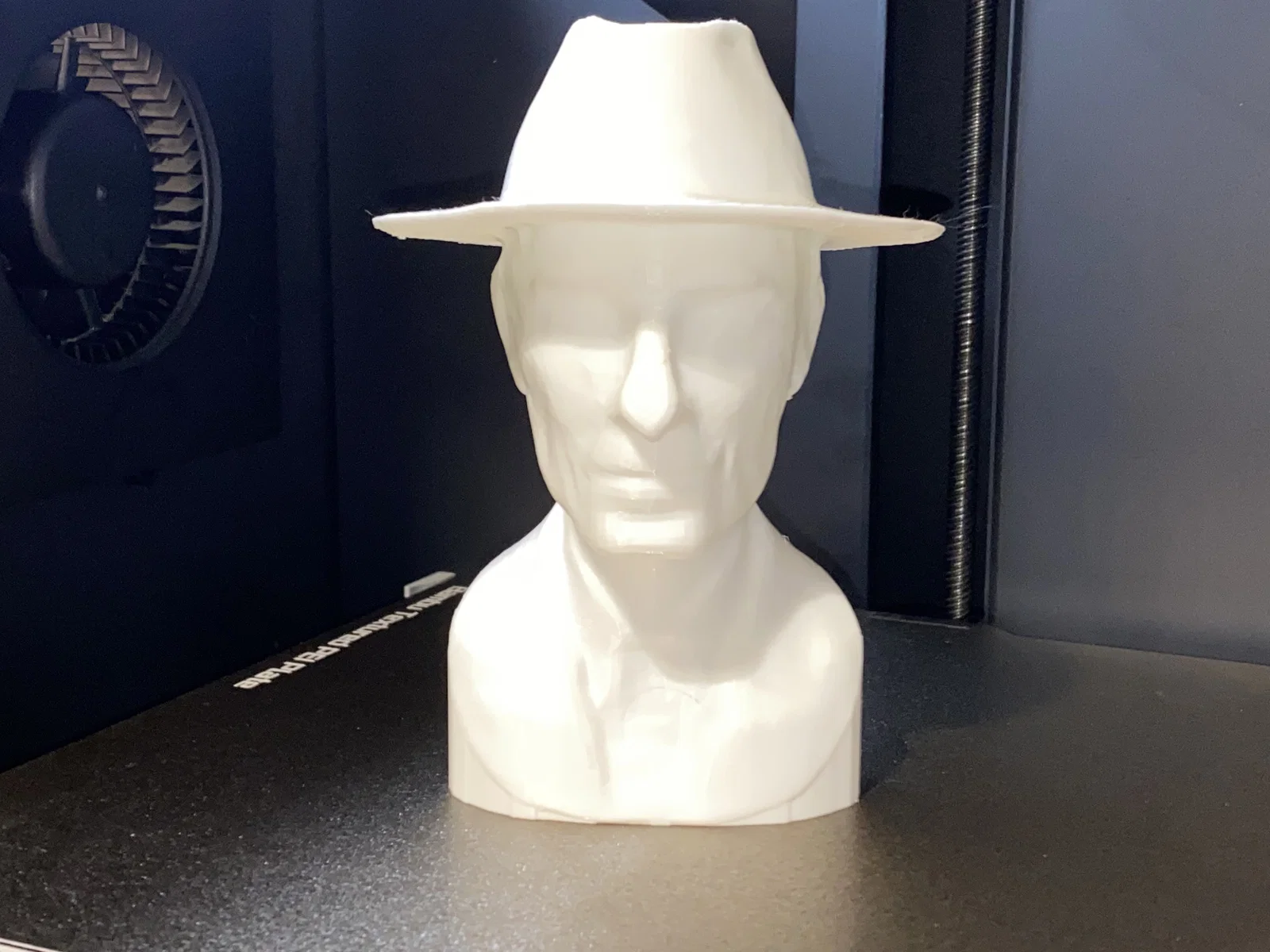 Mẫu bust J. Robert Oppenheimer (cha đẻ bom nguyên tử) được thiết kế cho lớp Vật lý. Tạo form bằng Luma AI Genie rồi chỉnh sửa trong Blender. Hiện vẫn là “work in progress” và sẽ có thẻ giải thích kèm theo.