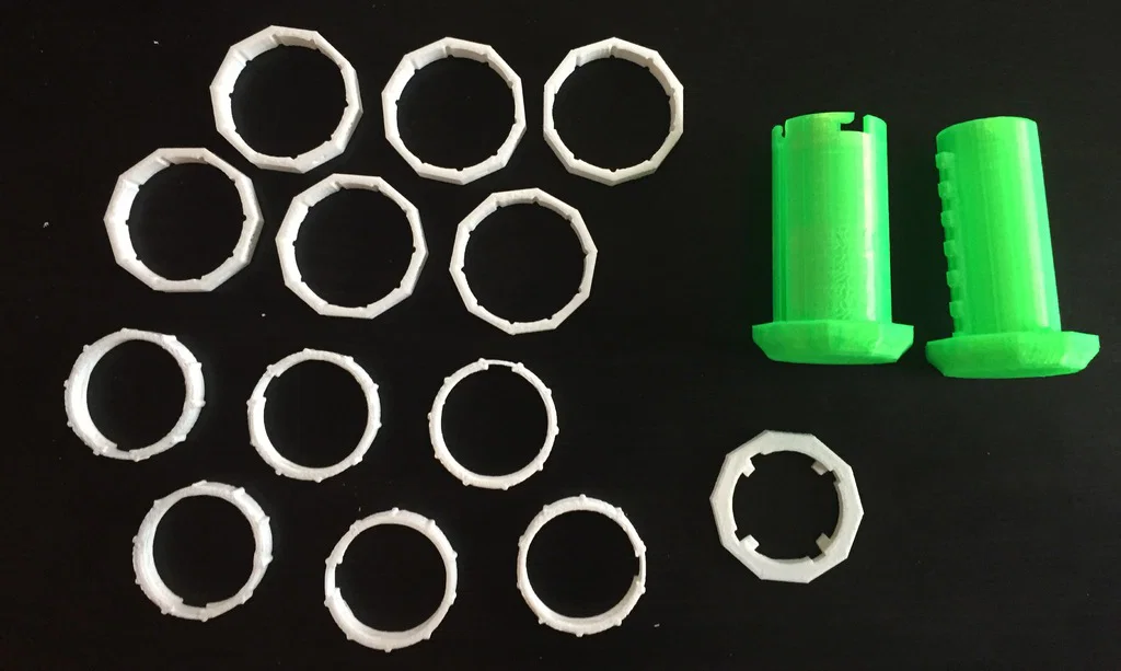 Để cho ra kết quả tốt nhất, nhớ đặt các mảnh ring nằm phẳng và các mảnh tube nằm trên đầu lớn hơn trong lúc in. Khuyến nghị dùng support, dù một số mảnh (đặc biệt ring_outer) đã có người in thành công mà không cần.