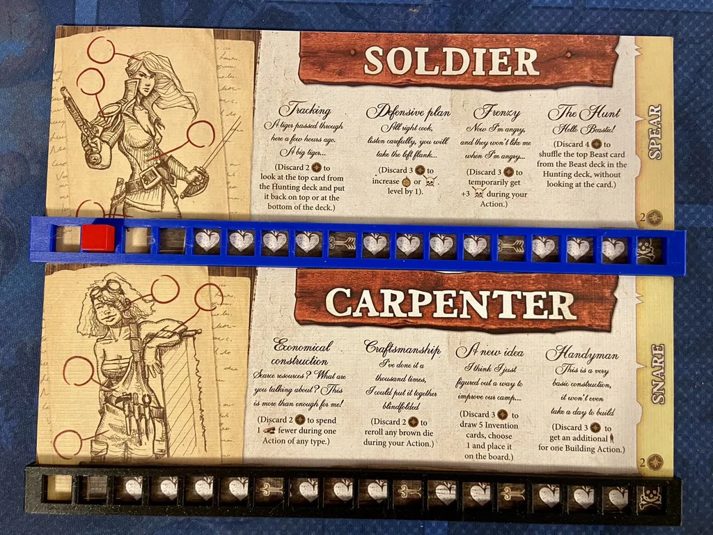 Mỗi lần chơi là mình cứ hay vô tình hất rớt khối cube theo dõi máu (health tracker). Mình có thấy mấy mẫu của Stef26 trên Thingiverse, nhưng mình muốn chỉ dùng một file/một lần in mà có thể đổi qua lại cho nhiều nhân vật, nên mình tự thiết kế cái này. Mình dùng nozzle 0.4 và in ở độ phân giải .20. Nếu máy in của bạn đã tune ổn, nó sẽ vừa khít với các character board. Nên in dựng đứng (như file tải về) để khỏi cần support. Mình không khuyến khích dùng nozzle lớn hơn 0.4 vì độ dày có thể làm khe quá chật, khiến board khó lắp vô. Lưu ý là nó gần như vừa hoàn hảo cho board Soldier và Explorer, nhưng hơi lệch một chút với Cook và Carpenter. Với mình thì vẫn đủ gần để dùng được mà không cần in các file khác nhau. Hy vọng giúp bạn giữ cube đứng yên đúng chỗ.