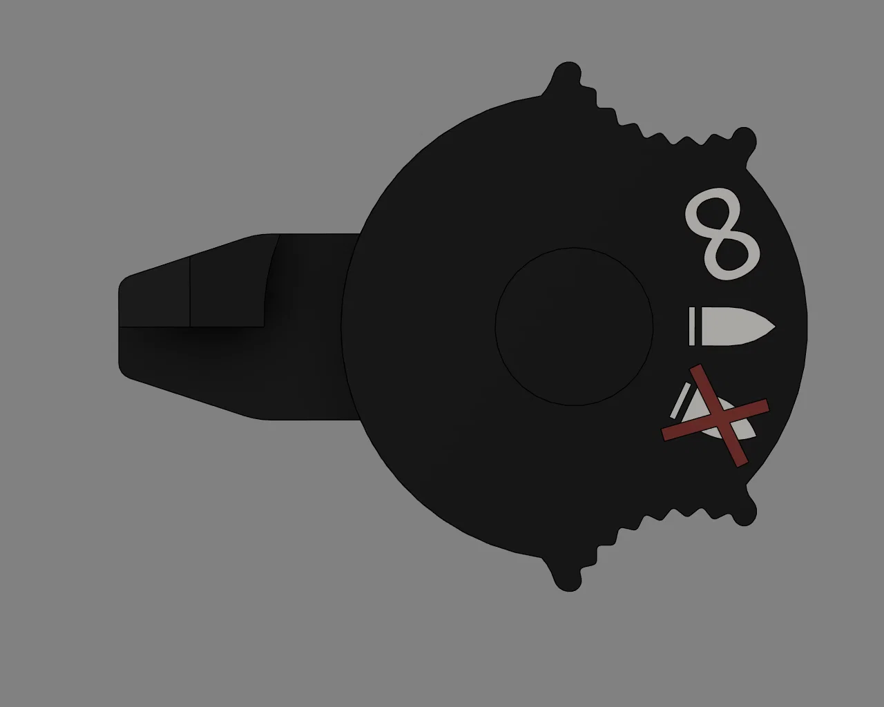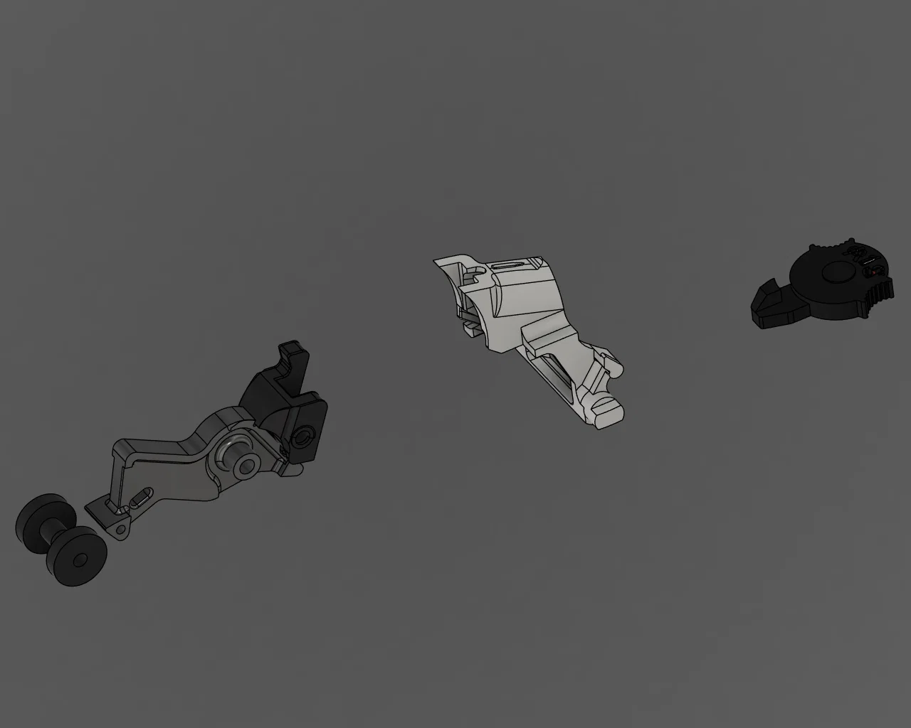 Tất cả chi tiết nên được in đặc (solid). PLA sẽ không dùng được cho bất cứ thứ gì ngoài selector switch. Nylon là vật liệu khuyến nghị. Bạn cần dùng vật liệu bền, chịu va đập tốt. Tránh các loại filament carbon hoặc glass fiber vì hạt gia cường có thể gây mài mòn quá mức ở các bề mặt tiếp xúc hoặc bề mặt sear.