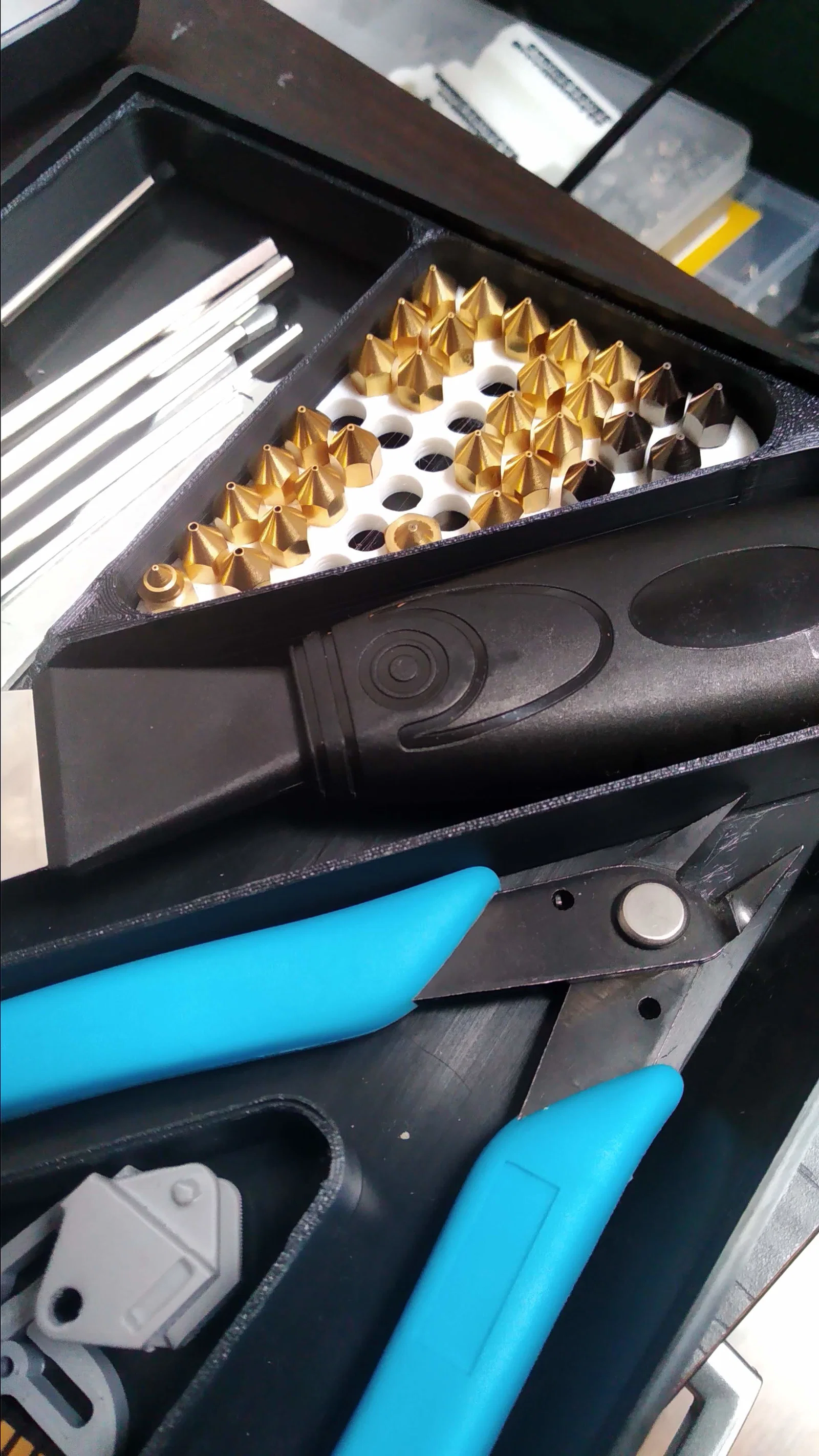 Miếng chèn khay Ender 3 S1 Pro giúp sắp xếp gọn dụng cụ và có chỗ đỡ nozzle. Tác giả bố trí theo ý rồi vẽ contour để tạo insert. Khuyến nghị in lật ngược và dùng supports cho phần cut của scraper.