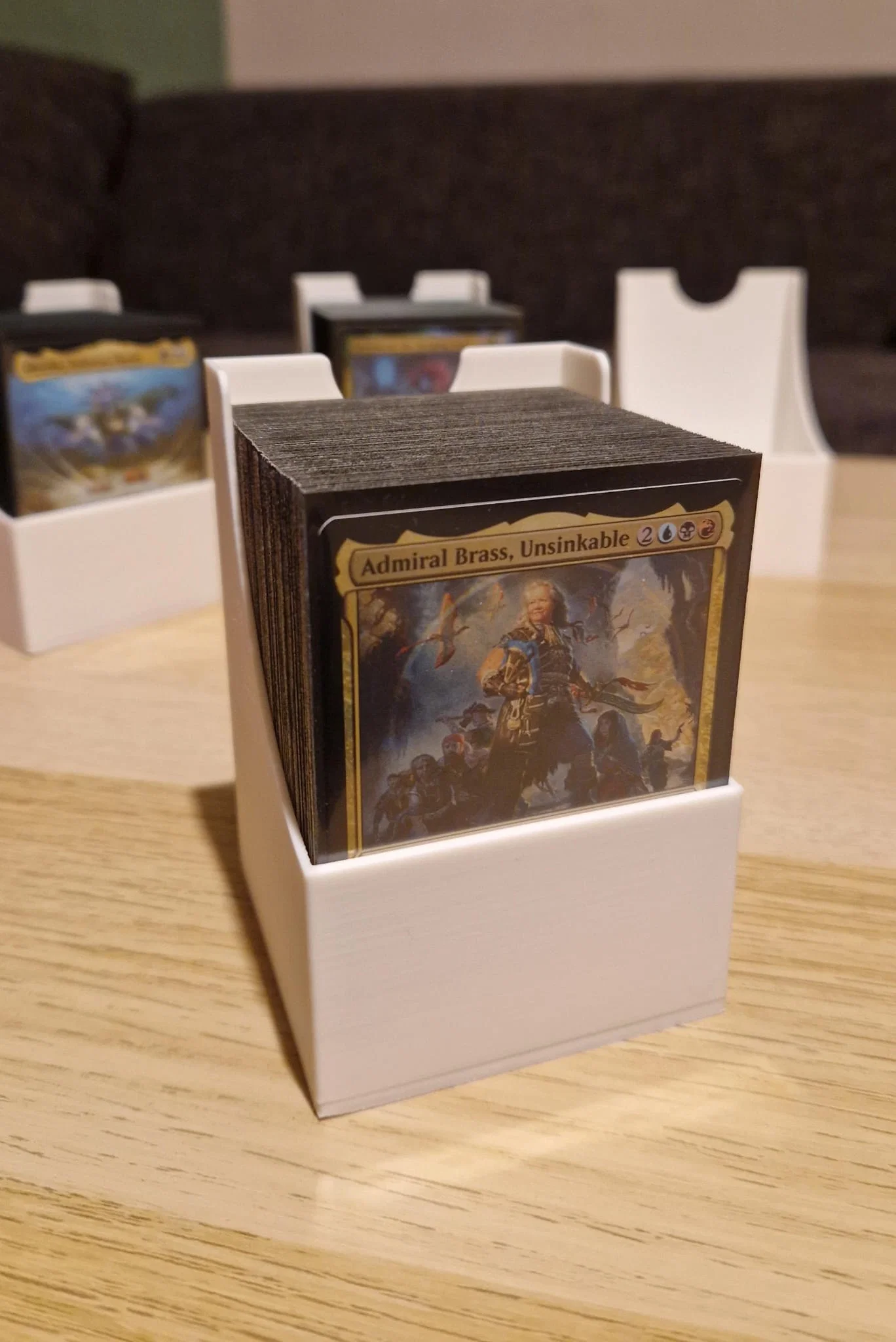 Lấy cảm hứng từ Gamegenic Watchtower, thiết kế mấy insert này theo đúng gu của mình. Mình rất thích kiểu lấy bài dễ, và còn có thể tận dụng làm deck holder trong lúc chơi. Mình chủ yếu dùng mấy insert này để cất commander decks.