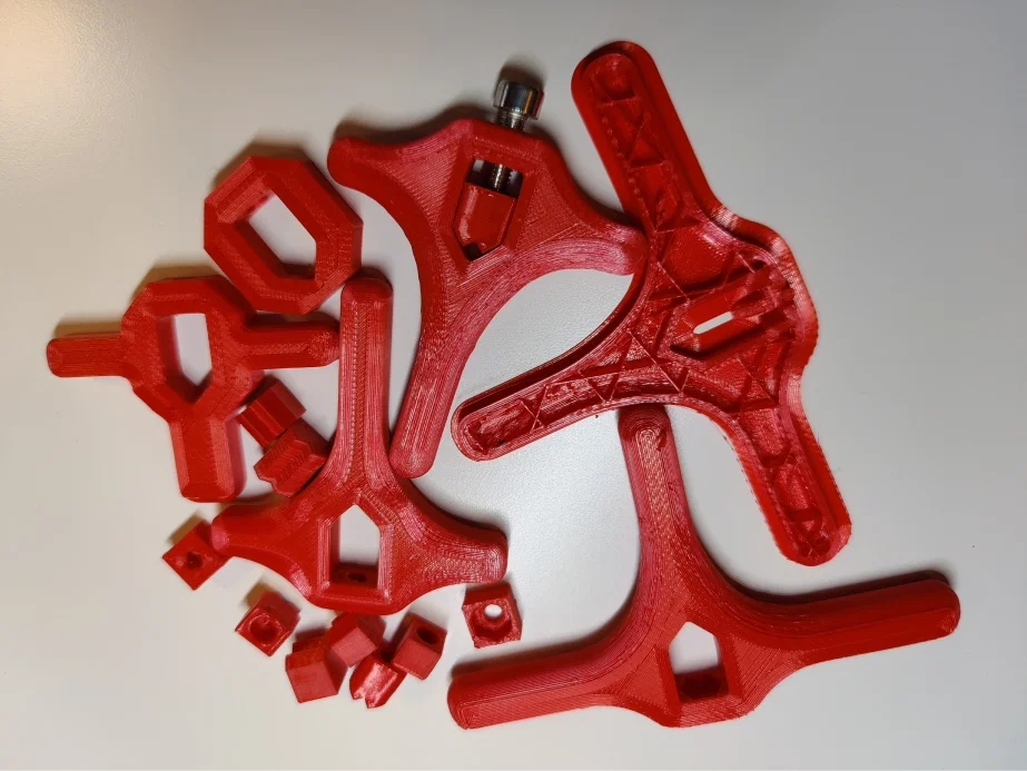 Mình khuyên bạn in thêm một cái knurled nut cho con bolt M5, để khỏi cần dùng dụng cụ khi siết.