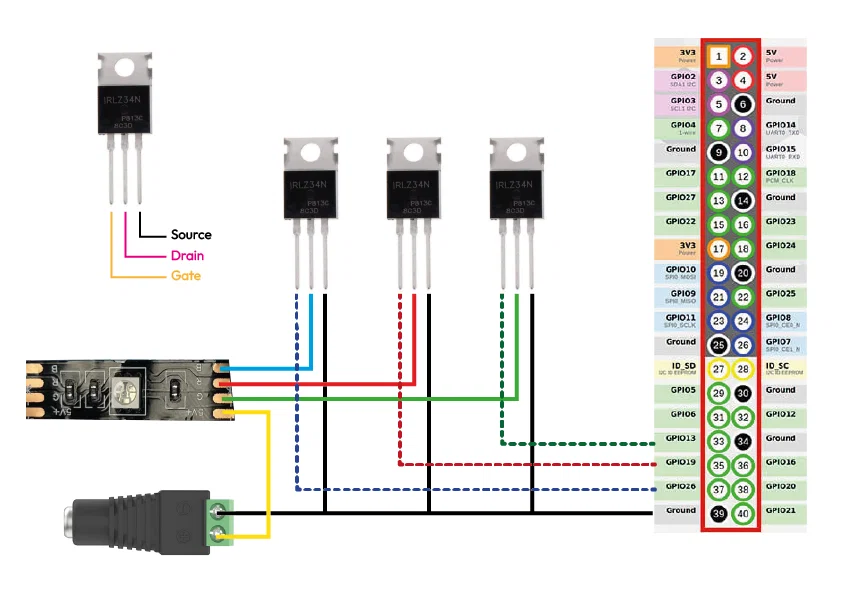 Mình quyết định nối dây LED vào vài transistor MOSFET, và điều khiển đèn bằng Raspberry Pi GPIO với plugin OctoRelay cho OctoPrint. Giờ đèn sẽ tự bật trước khi in, chuyển sang màu xanh khi in xong, rồi tự tắt sau 5 phút.