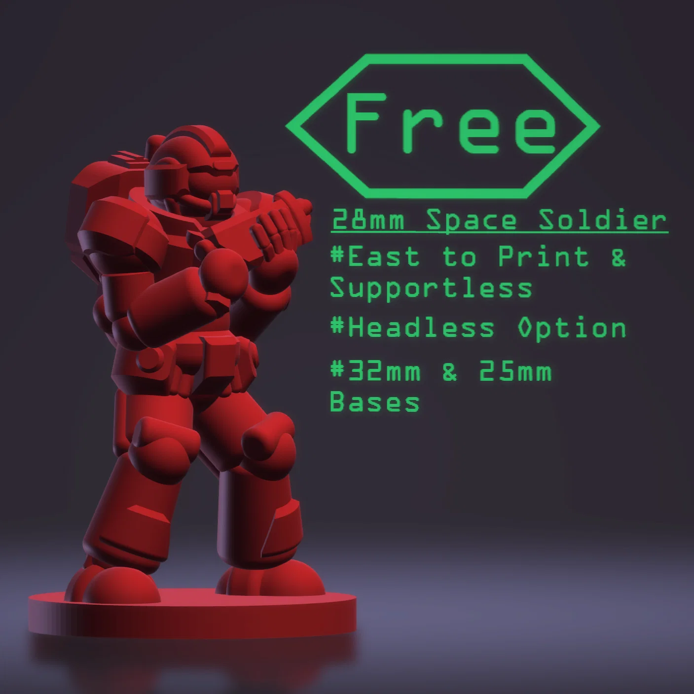 Mẫu 28mm Supportless Space Soldier cho chiến binh không gian in dễ, không cần support. Có blaster, power pack, 2 đế 25mm/32mm và tuỳ chọn không đầu để bạn gắn đầu theo ý. Đã test FDM, hợp cả resin.