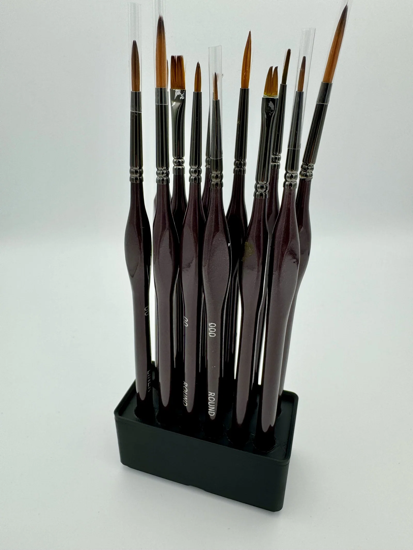 Hộp Gridfinity kích thước 2 x 1 x 5 với 12 lỗ cắt để cắm cọ, bút và các món khác có đường kính tối đa 9mm. Các lỗ cắt sâu 3cm.
