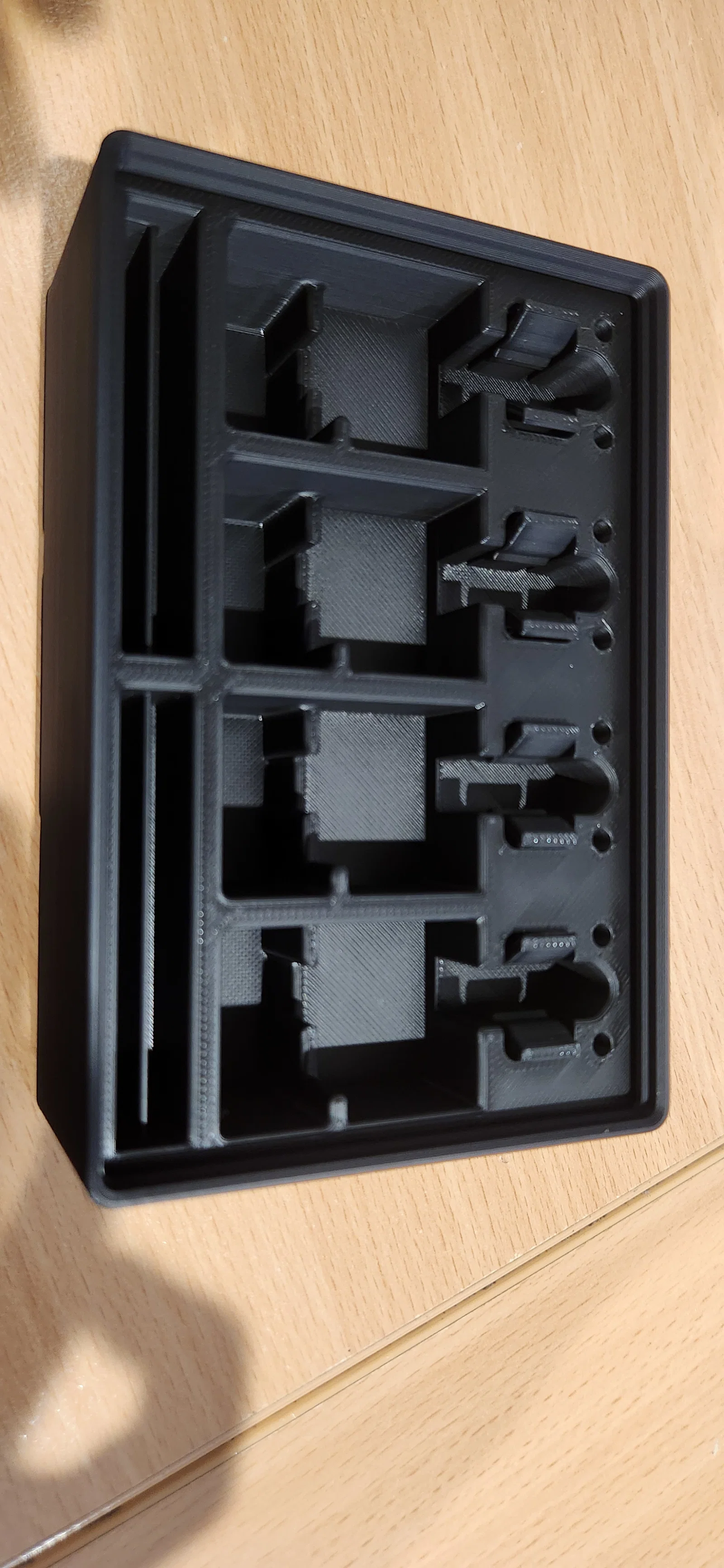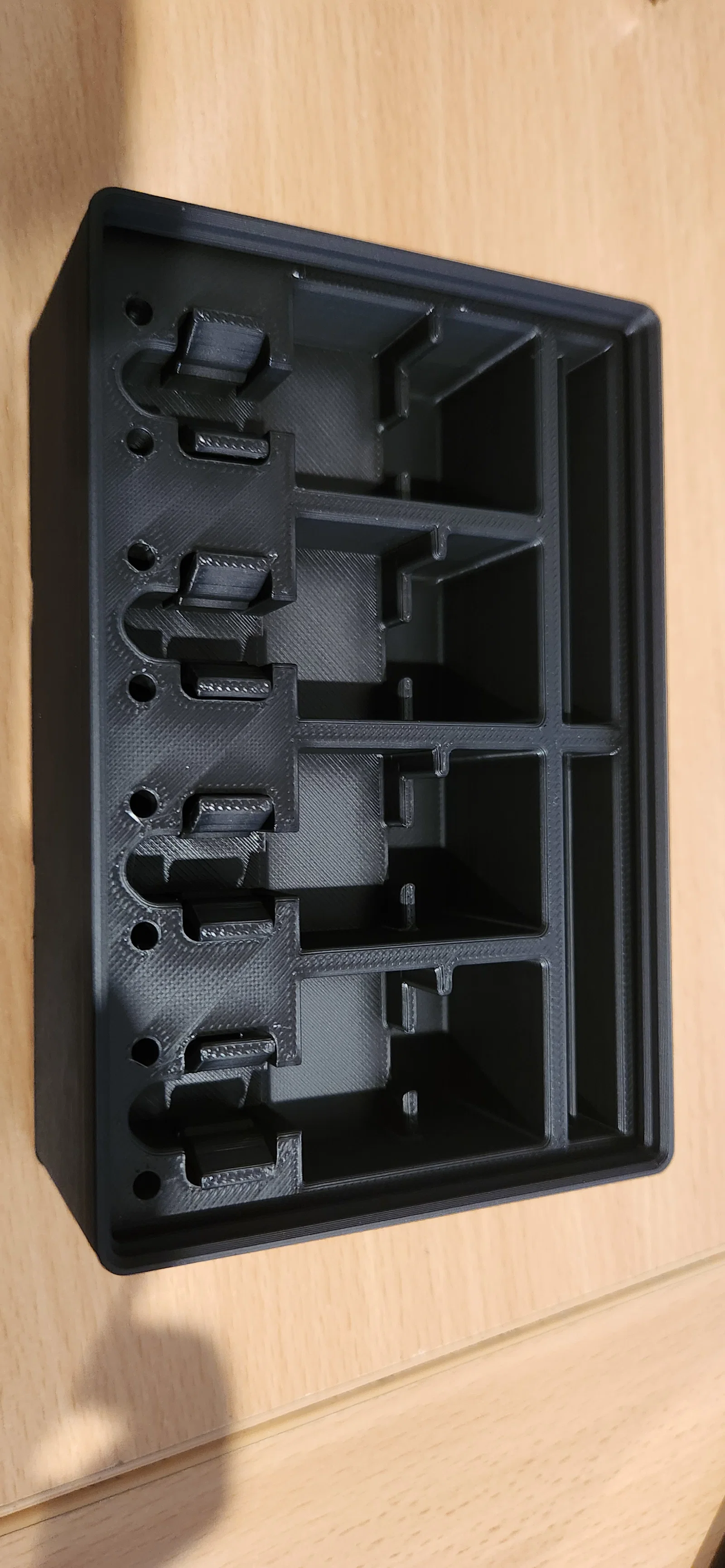 Khay Gridfinity 3x2x6 có sẵn phần khoét để gắn nam châm 6x2mm và có gờ để xếp chồng.
