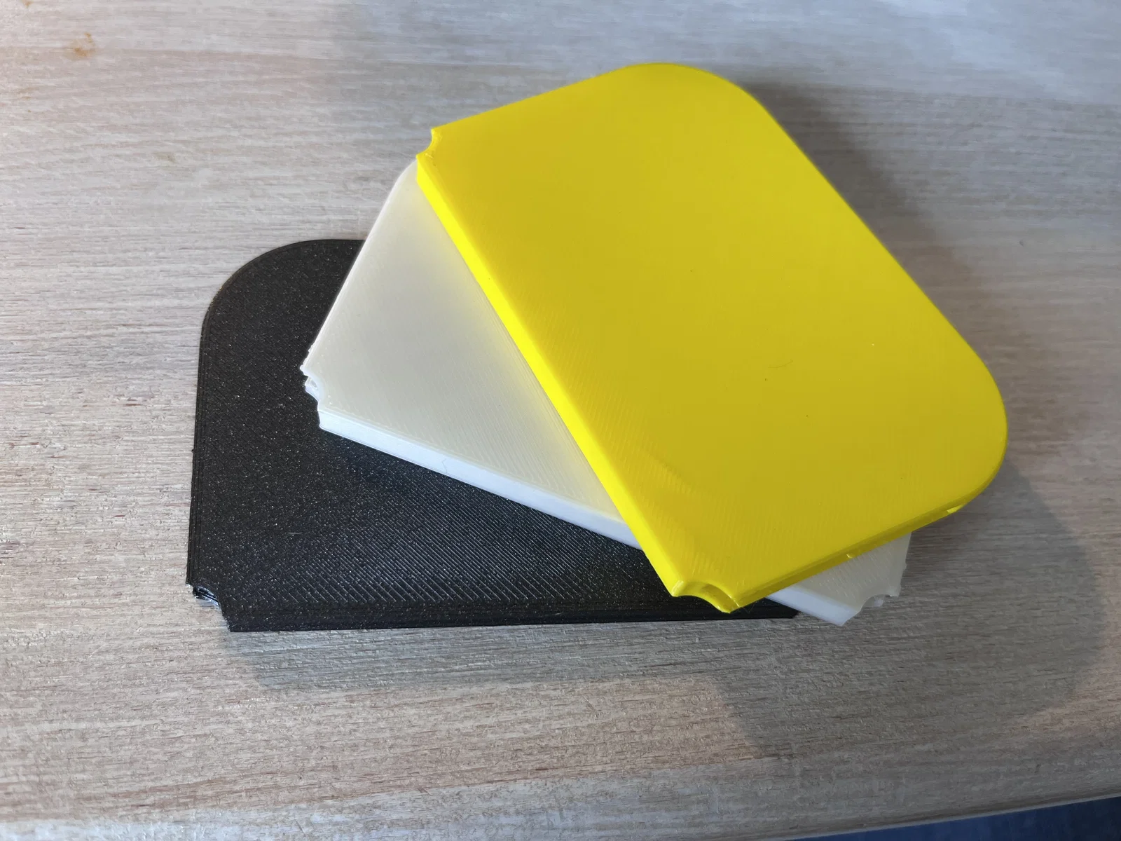 In tốt nhất là đặt nằm ngang, cần support structure do phần dẫn hướng. Tuy nhiên, phần này có thể tháo ra rất dễ. Các mẫu in trong hình được tạo bằng PLA.
