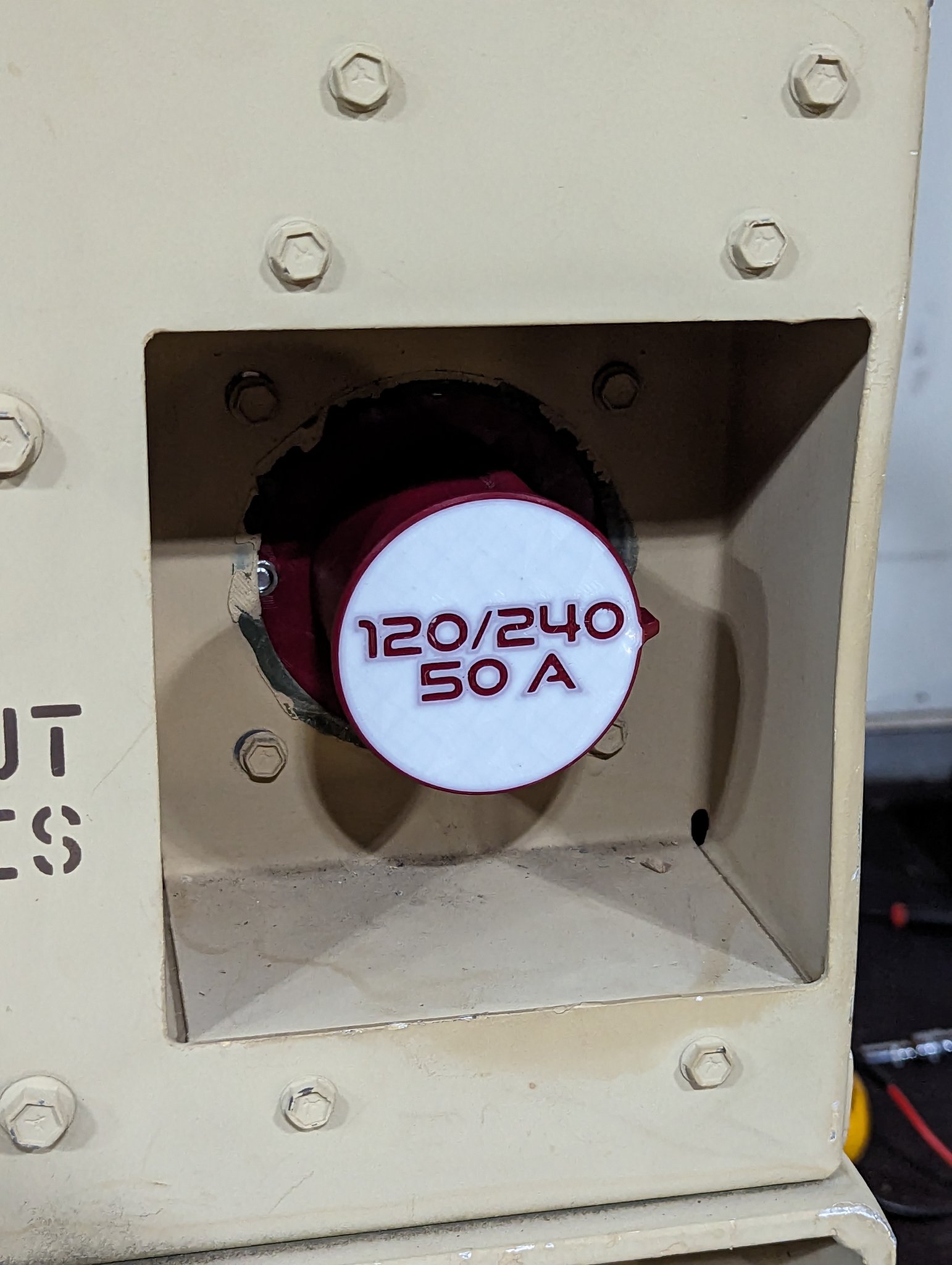 Bảng chuyển đổi đơn giản cho MEP-803a hoặc MEP-802a cho ổ cắm Marinco CS6369 50 Amp, 125 Volt/250 Volt. Nắp che được tạo ra bởi Digger556(J W) và có thể tìm thấy tại đây