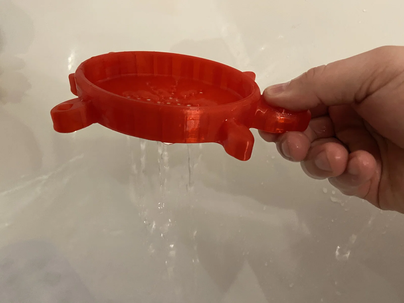 Bade-Schildkröte là rùa đồ chơi đi tắm in bằng TPU, không cạnh sắc nên an toàn cho bé. Có thể đổ nước vào rồi chảy ra qua lỗ phía dưới, nhờ khoang khí (15% infill) nên nổi tốt. In 100% hoặc 200%.