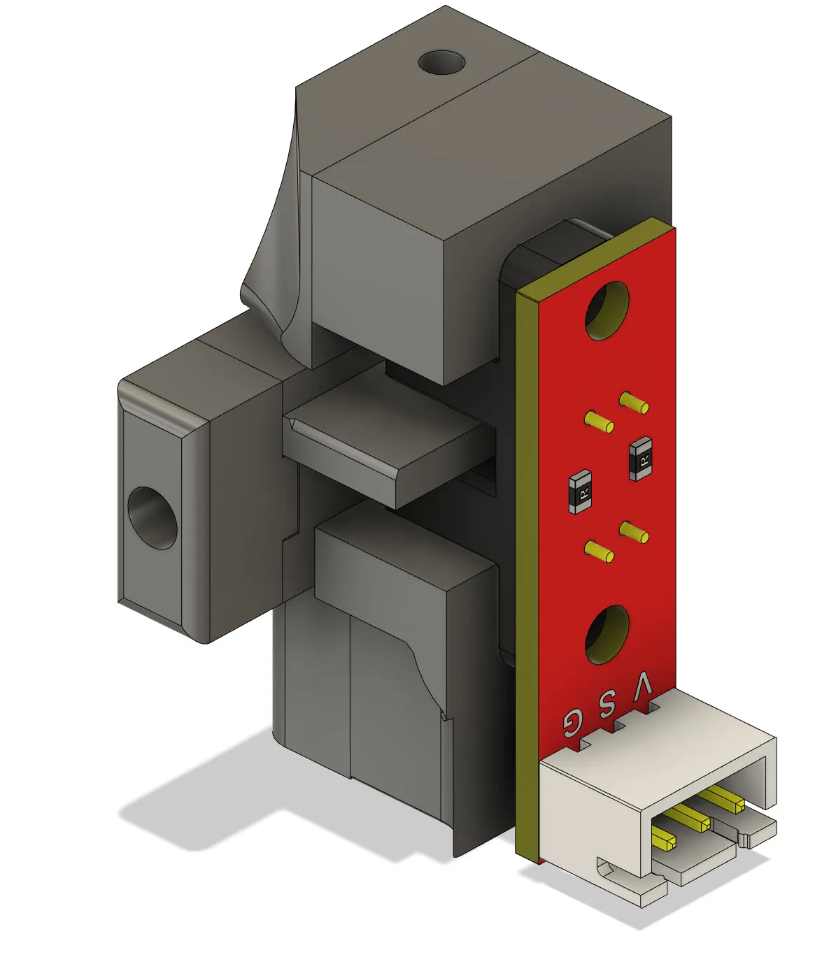 trước đó tôi đã làm một đầu cảm biến quang cho ERCF, hãy kiểm tra liên kết này: https://www.f3d.vn/3d-model/34227-gia-do-dau-cuoi-quang-hoc-cho-ercf-tho-noi-gian trong thiết kế đó, một bộ chặn ánh sáng cần được lắp đặt trên bộ chọn, và không có gì trên lỗ đầu cảm biến. Tuy nhiên, tôi cũng muốn làm một đầu cảm biến quang kiểu nút, để không cần phải lắp gì trên bộ chọn. chúng tôi chỉ cần một nút trên lỗ đầu cảm biến, được kích hoạt khi bộ chọn chạm vào tường. Bởi vì không ai muốn tháo rời toàn bộ tấm động cơ và hai bức tường, nên đầu cảm biến kiểu nút này được thiết kế để chỉ cần lắp đặt, không cần tháo rời lớn. tuy nhiên, cần phải tháo tấm trên ra/in một cái mới. Yêu cầu phần cứng 1. một lò xo có đường kính 3mm chiều dài khoảng 15mm (hoặc ngắn/hơn), để đẩy nút. 2. vít M2.6 10mm, để lắp đặt giá đỡ dưới tấm trên 3. vít nhỏ M1.8 hoặc M2 khoảng 6, 7, hoặc 8mm dài, đây là thứ ít phổ biến, xin lỗi 4. đầu cảm biến quang, xem hình, cái này rất rẻ để mua. bởi vì chúng tôi không muốn tháo rời tấm động cơ/hộp số ERCF và các bộ phận gần đó, nên đầu cảm biến kiểu nút này phải được thiết kế hơi vượt mức, nếu không sẽ không thể lắp đặt/đặt bên trong không gian hộp số nhỏ được tạo thành bởi tấm trước và tấm sau hộp số. nút phải nhô ra khỏi lỗ đầu cảm biến gốc, vì vậy nó quá lớn để chỉ đặt bên trong như vậy, vì vậy tôi phải làm nút thành hai phần, và sử dụng một vít nhỏ M1.8/M2 để lắp đặt sau khi thân chính được lắp vào vị trí. #### Cài đặt in: dễ in, không cần hỗ trợ. Định hướng phần đúng cách bằng cách sử dụng kiến thức in 3D và lý trí thông thường. đổ đầy 30% hoặc cao hơn màu sắc, đối với thân nút, đây là một bộ chặn ánh sáng, vì vậy độ đổ đầy nên cao hơn (30%, 40% 50%+), màu sắc nên tối hơn (tôi nghĩ bất kỳ màu nào cũng được, filament trong suốt sẽ không hoạt động) pin_button_front_longer.stl: trong trường hợp pin_button_front.stl hơi ngắn và không thể chạm/kích hoạt khi về nhà, hãy sử dụng phiên bản dài hơn này. #### các bước lắp đặt: 1. in tất cả các bộ phận 2. lắp đặt đầu cuối quang học vào thân chính, sử dụng 2 vít tự khoan M2.6, cắm ở phía dưới 3. Đẩy sợi filament ra khỏi cổng ERCF hiện tại trước nếu cần 4. Tháo hai chốt cho các thanh M8, nếu không thể, hãy sử dụng tua vít đầu phẳng để đẩy nó từ dưới lên. Đừng làm quá mạnh, đừng làm tổn thương ngón tay hoặc mắt của bạn!! (Nếu không thích nó quá chặt, có thể sử dụng một cái dũa tròn trên đó và thêm một chút mỡ.) 5. Với 2 chốt đã được giải phóng, xoay phần thanh M8 lên trên. vì vậy chúng ta có không gian trên bảng điều khiển trên của ercf. 6. tháo bảng điều khiển trên của ERCF, chỉ cần tháo 3 vít ở trên, dễ dàng. 7. lắp đặt thân chính dưới bảng điều khiển trên mới của ERCF (nó có một lỗ vít) bằng vít tự khoan M2.6 10mm 8. đặt lò xo vào lỗ nhỏ, đặt phần nút phía sau vào vị trí, cũng để nó giữ lò xo. bộ chặn ánh sáng bên trong công tắc quang học. không lắp đặt phần nút phía trước tại thời điểm này. nó quá lớn để vào trong phòng hộp bánh răng. 9. đặt phần đã lắp ráp trở lại bên trong phòng hộp bánh răng, có thể đẩy phần nút phía sau một chút để nó vào trong, khi không thể vào sâu hơn, nghiêng bảng điều khiển trên một chút để làm cho nó vào đúng vị trí. khi cần tháo ra/lấy lại, hãy cẩn thận về việc lò xo có thể bị mất vì nó thích nhảy vào không gian nào đó. 10. với thân chính và bảng điều khiển trên đã vào vị trí, sử dụng vít M1.8/M2.0 để lắp đặt phần nút phía trước từ bên ngoài của hộp bánh răng. 11. đặt 3 vít trở lại cho bảng điều khiển trên để hoàn thành việc lắp đặt. 12. Cắm 3 dây của đầu cuối quang học, VCC Gnd, tín hiệu vào PCB ERCF. Thứ tự của chúng có thể không giống như cổng/ổ cắm của PCB ERCF của bạn, vì vậy hãy kiểm tra thứ tự định nghĩa dây/chân và kiểm tra lại. 13. tháo vít đầu cuối trên bộ chọn, thiết kế này không cần gì để va chạm vào đầu cuối. #### Kiểm tra 1. nhấn nút, nên cảm thấy dễ dàng và mượt mà. 2. khi không nhấn nút, chúng ta nên thấy một số ánh sáng phát ra từ bên trong hộp số (xem hình ảnh) 3. khi nhấn nút, ánh sáng nên tắt. 4. kiểm tra nó hoạt động chính xác: trong trang web mainsail → máy → truy vấn endstop, khi bộ chọn không ở vị trí home, nó mở, khi ở vị trí home (bộ chặn ánh sáng nằm bên trong lỗ), nó được kích hoạt. nếu nó bị đảo ngược, kiểm tra cấu hình phần cứng, có thể cần đảo ngược chân với một ! bây giờ chúng ta có thể thực hiện một ERCF home.