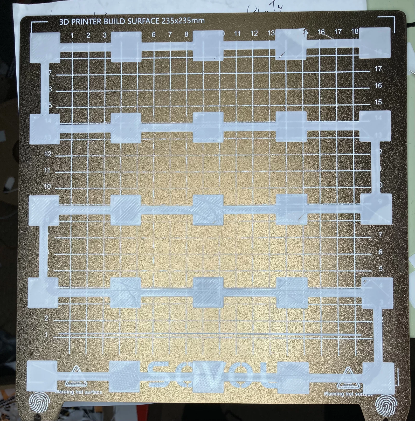 Mình thiết kế bản in này để giúp canh chỉnh (dial in) từng vị trí trong lưới manual mesh bed leveling 25 điểm (có thể sửa từng offset riêng). Mình lấy tọa độ từ máy Sovol SV06 của mình, nên máy khác có thể sẽ khác. Các ô vuông được căn đúng ngay trên các điểm probe. Mình thêm một dải nối tất cả lại để gỡ ra cho dễ.