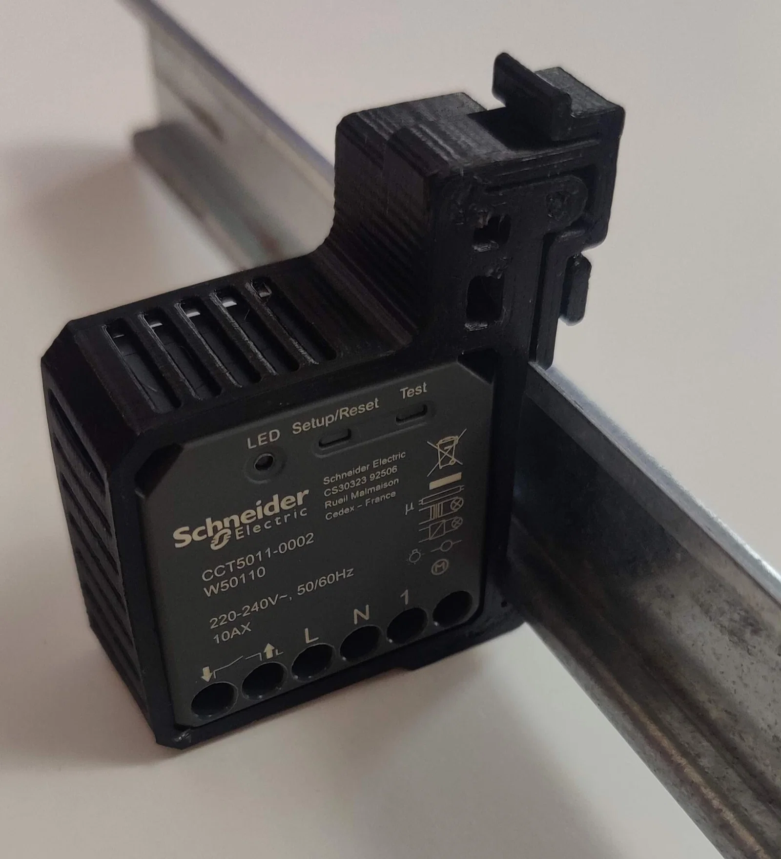 Ngàm gắn DIN rail đơn giản dành cho module công tắc và dimmer Schneider Wiser. Thiết kế cho phép xếp nhiều module cạnh nhau nhưng vẫn chừa khe hở 5mm để tăng lưu thông không khí, giúp tản nhiệt tốt hơn.