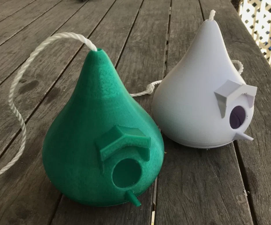 Mẫu Bird house có dáng organic, dễ lắp và in không cần support. Lỗ vào 30 mm hợp chim nhỏ, có lỗ trên để luồn dây treo. Có nhiều biến thể và các bản đế khác nhau để bù dung sai, tiện tháo vệ sinh.