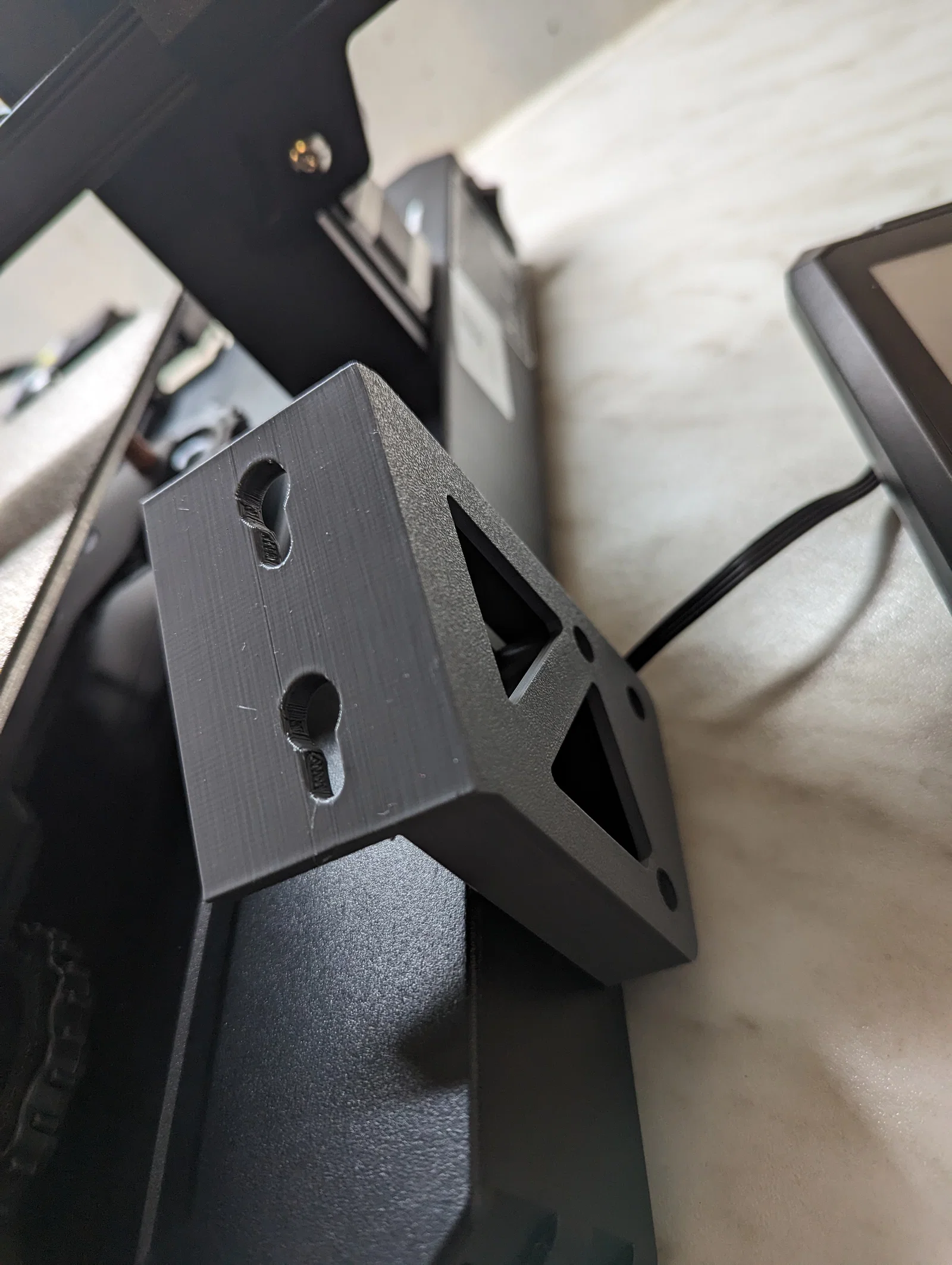 Đây là một kiểu gá/mount màn hình thay thế, giúp dời màn hình lên cao và vào phía trong để máy in chiếm ít không gian hơn. Góc nghiêng của màn hình gần như giống bản gốc. Vẫn có thể dùng lại các con vít zin.