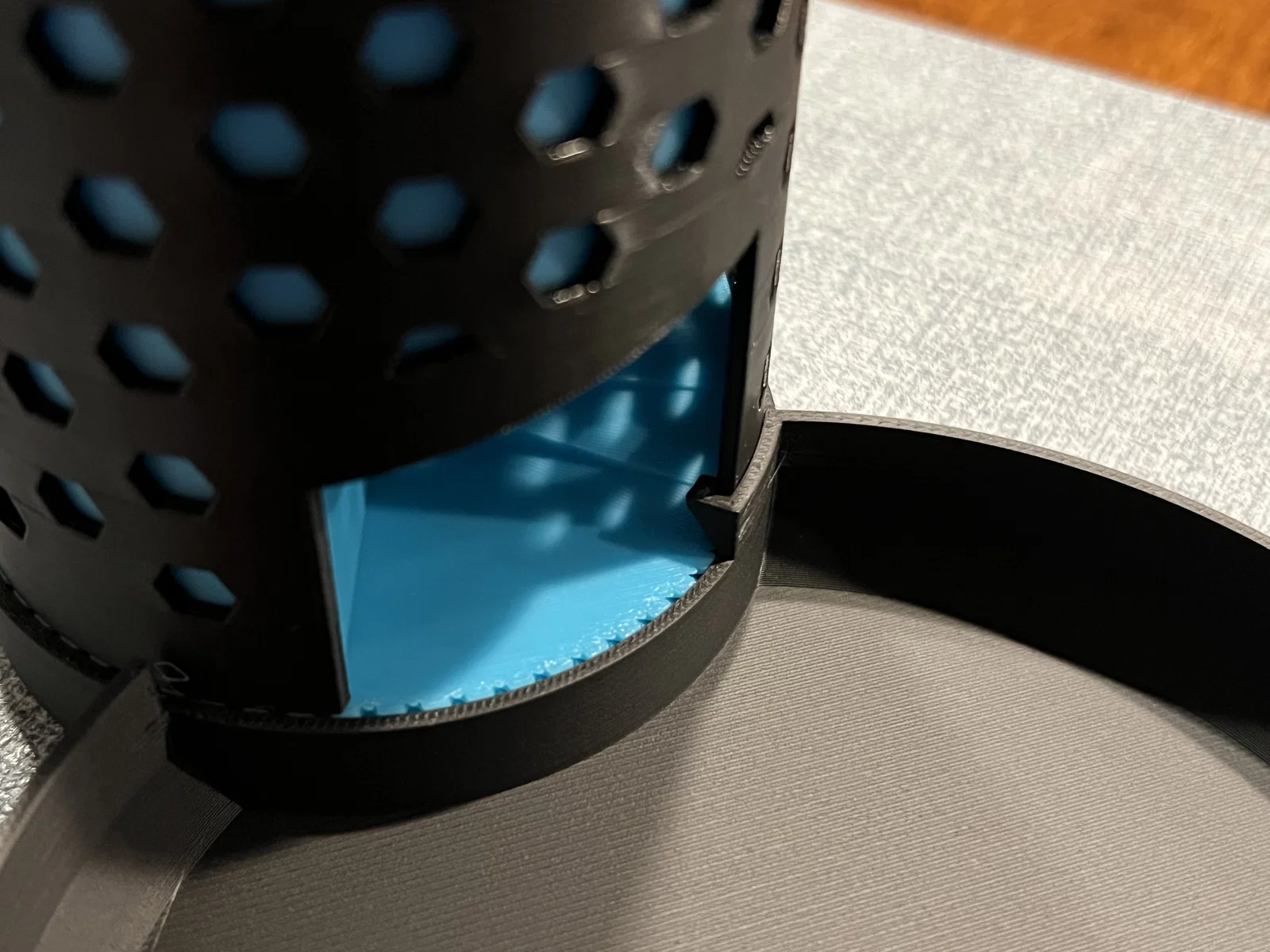 Mình đã thử vài thiết kế và bản này chạy rất ổn. Thỉnh thoảng có viên xúc xắc bay mạnh ra khỏi tower và có thể văng qua thành, nhưng hiếm. Mình dùng thường xuyên với 4 viên cho trò Can't Stop.