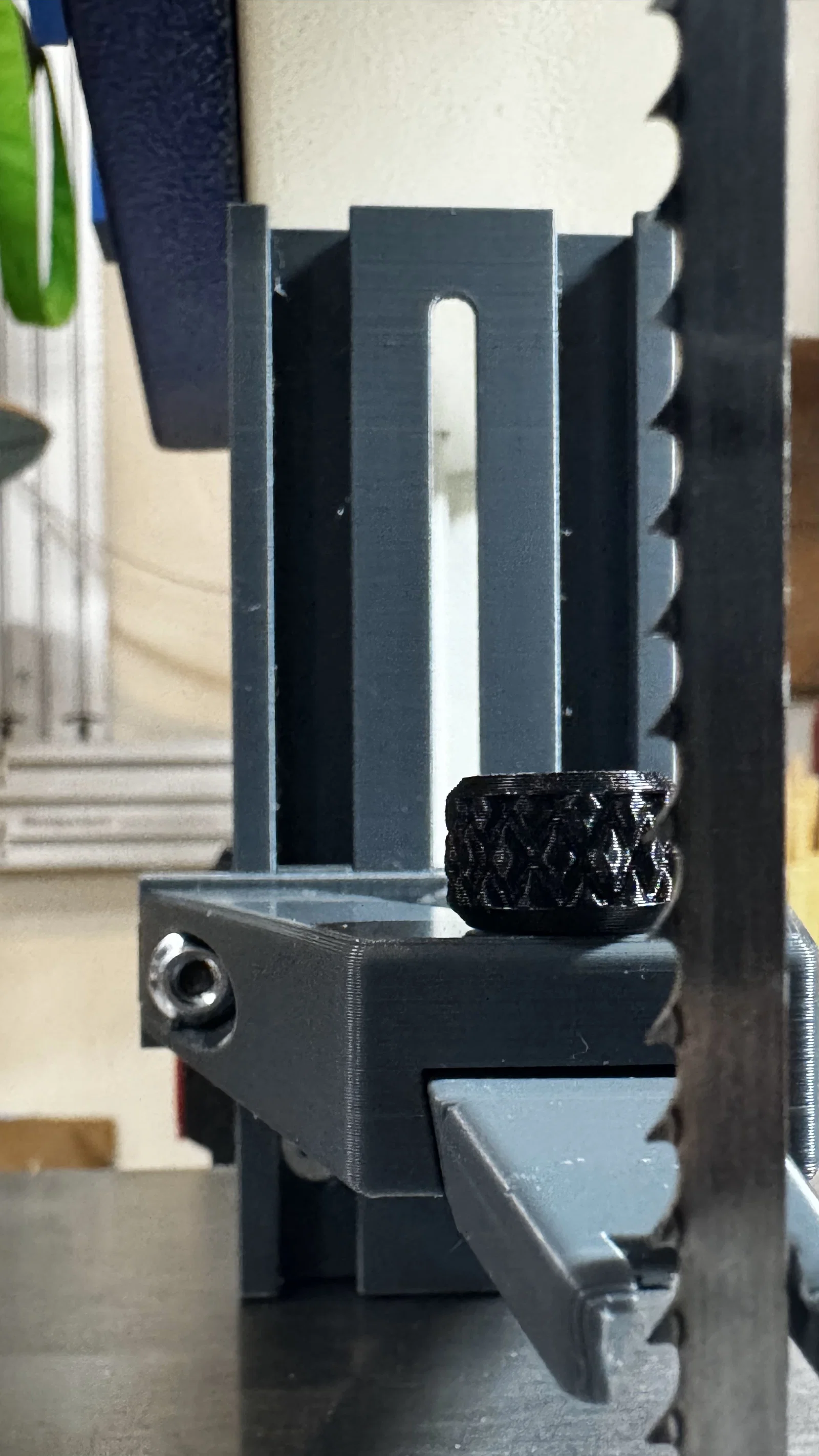 Bạn cũng có thể gắn cái guide này lên một khúc gỗ rồi kẹp (clamp) nó vào bàn bandsaw. Chiều cao của guide chỉnh bằng 1 bu lông M4; mình dùng núm vặn knurled knob từ mẫu của bạn này ( ). Phần tip thay rất dễ, lỡ có quẹt/cắt trúng bằng lưỡi bandsaw thì thay cái khác là xong. Tất cả chi tiết đều in không cần support. Chúc in vui vẻ!