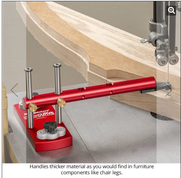 Mình muốn có một cái guide để giúp dùng bandsaw cắt các đường cong chính xác hơn. Thay vì bám theo đường chì vẽ trên gỗ, mình đặt một cái template lên bề mặt, rồi cái guide này sẽ đi theo template đó y chang.