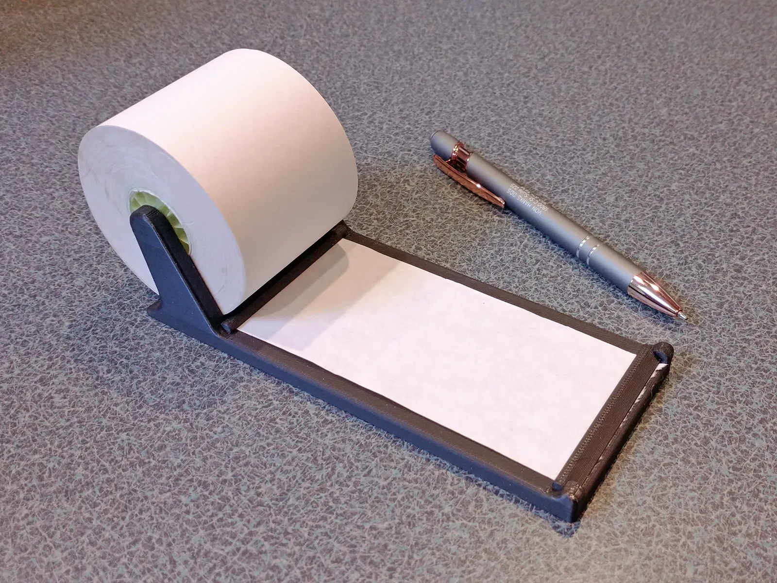 Tấm giấy này sử dụng cuộn giấy register tape rộng 2 ¼". Chỉ cần uốn tai ra để tải cuộn giấy và sau đó nhét nó dưới các thanh giữ để giữ phẳng. Thanh giữ phía dưới cũng đồng thời là một hướng dẫn để xé. Tôi đã bao gồm hai phiên bản: một có chỗ để bút và một không có chỗ để bút.