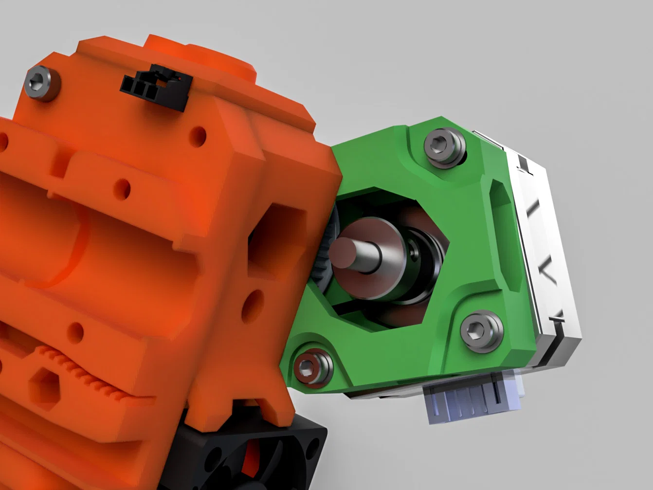 Mình rất thích “Bunny Science Extruder Motor Gearbox” của BunnyScience. Mình dùng một thời gian với vài chỉnh nhỏ, nhưng BunnyScience chuyển sang làm extruder hoàn chỉnh nên mình muốn tinh chỉnh thêm. Mod này về cơ bản hoạt động giống y hệt, nhưng có vài thay đổi thiết kế để cải thiện nhẹ (theo ý mình). Mình cũng thích ngoại hình thiết kế của knoopx, nhưng trên extruder của mình thì gearbox lại bị cấn với quạt hotend.