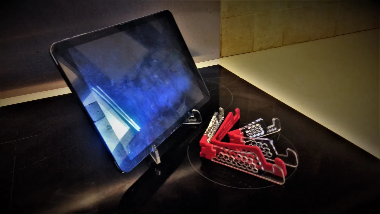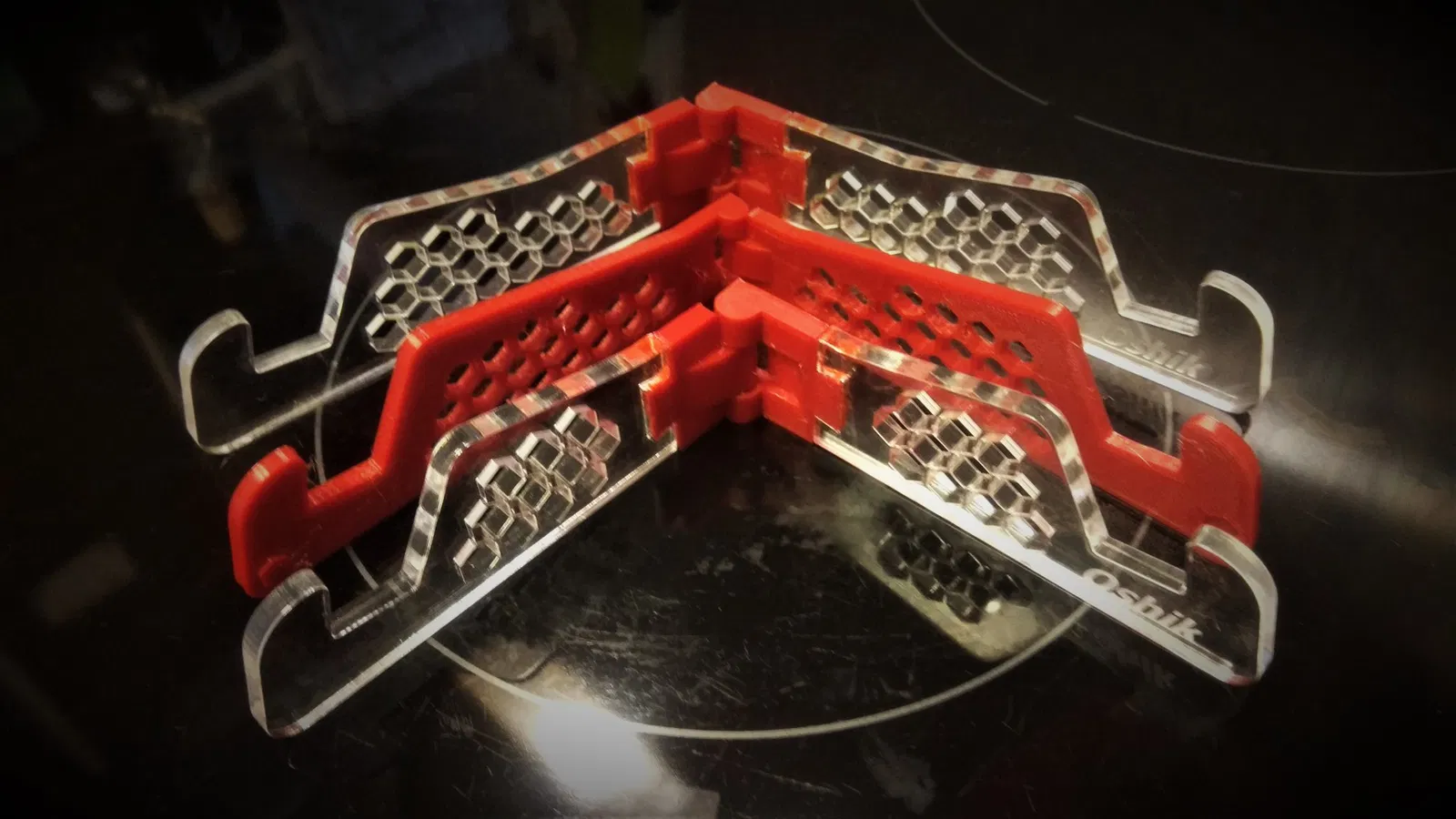 Tôi đã quyết định làm nó một nửa in 3D và một nửa cắt CNC. Tôi đã đính kèm bản lề trung tâm cũng như cánh tay gập của giá đỡ dưới dạng STL và DXF. Tôi đã làm của mình từ acrylic trong suốt và nó trông thật tuyệt. Cánh tay dài cho máy tính bảng