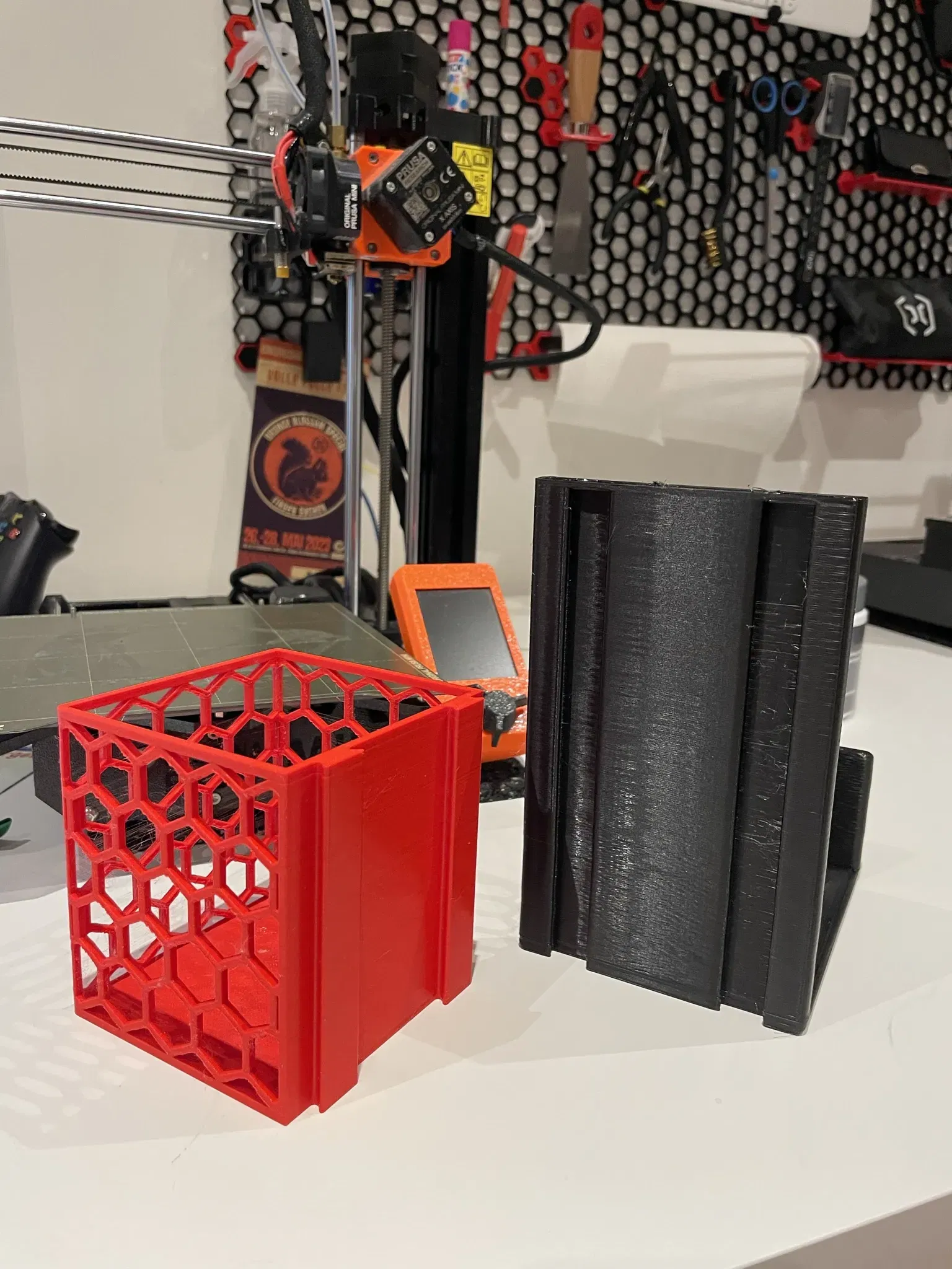 In bằng PLA made4print. Tôi đã sử dụng các cài đặt tiêu chuẩn với Prusa Mini của tôi (0,25mm Draft, không cần hỗ trợ, thay đổi độ đặc thành 10%). Bạn có thể muốn giảm tốc độ để tránh việc dây nhợ ở phần hình lục giác. Các kích thước để ghép các phần lại với nhau hoạt động rất tốt với tôi.