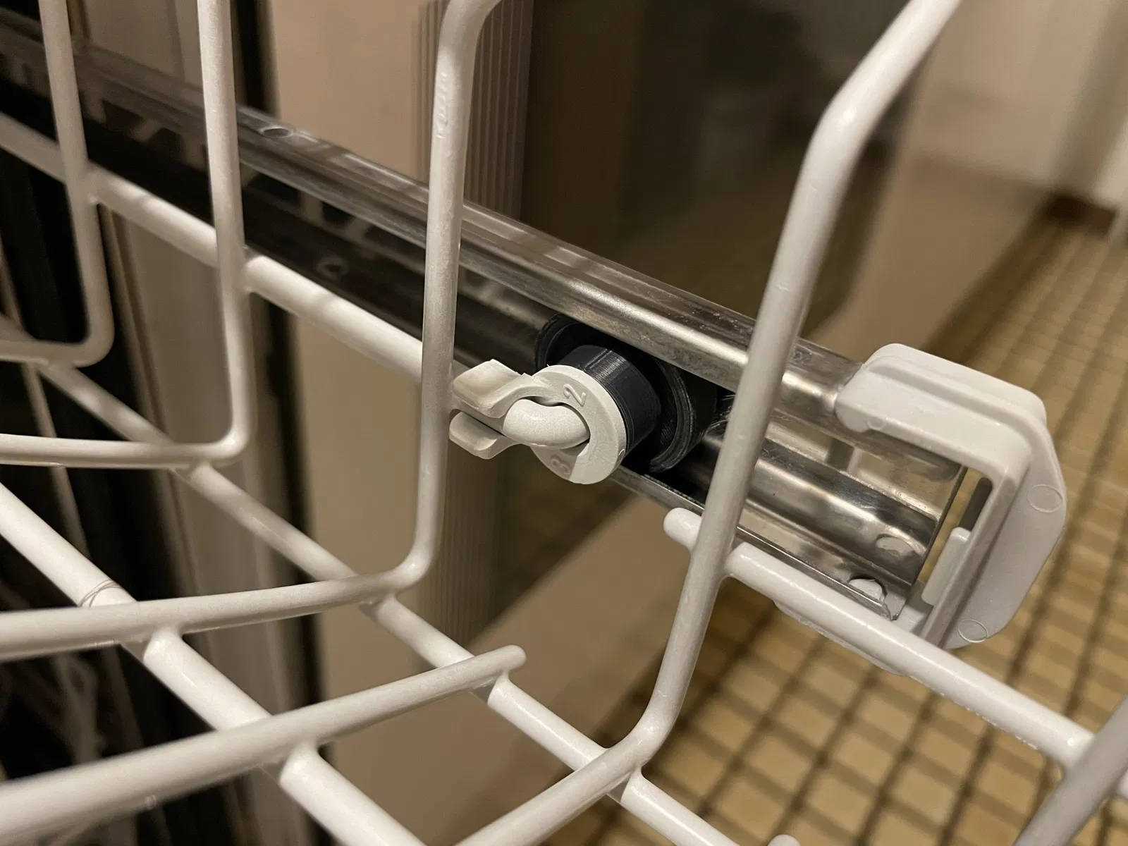 Bánh xe gia cố cho máy rửa chén Neff. Thiết kế ban đầu có những cái nan nhựa nhỏ giữa trục và bánh xe, cái mà phải bị gãy sau một thời gian nhất định, do nhiệt độ và nước muối trong máy. Tôi đã thiết kế lại bánh xe với kết nối chắc chắn giữa trục (không có nan) và chính bánh xe và in phần này bằng ASA, không bao giờ gặp vấn đề gì với bánh xe nữa.