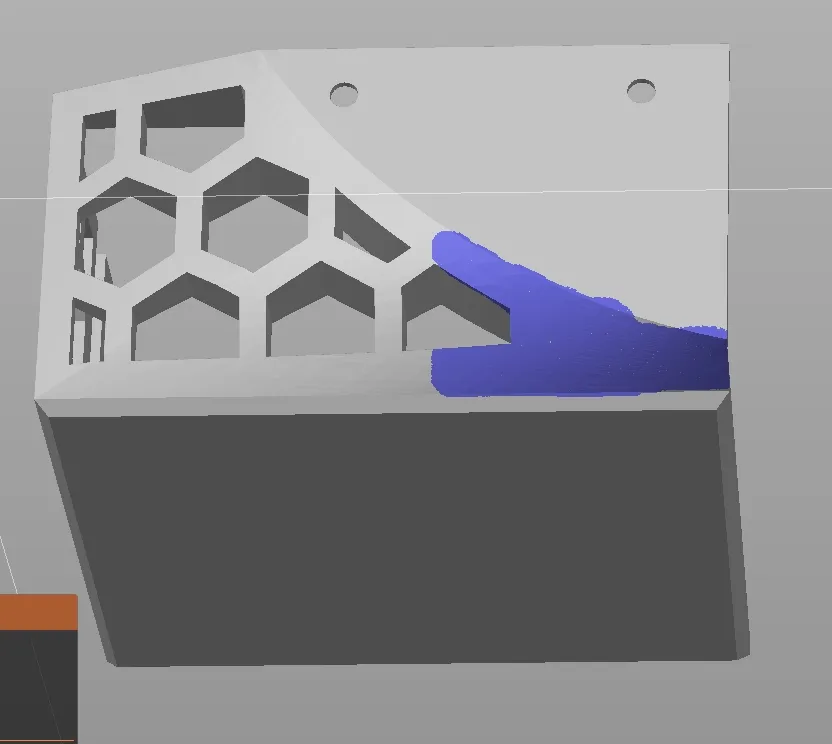 Đối với việc in, hỗ trợ là rất được khuyến nghị ở vị trí được đánh dấu trong hình ảnh cuối cùng (hỗ trợ vẽ trong eSlicer hoặc làm việc với các bộ chặn trong eSlicer). Phần còn lại của mô hình không cần hỗ trợ.